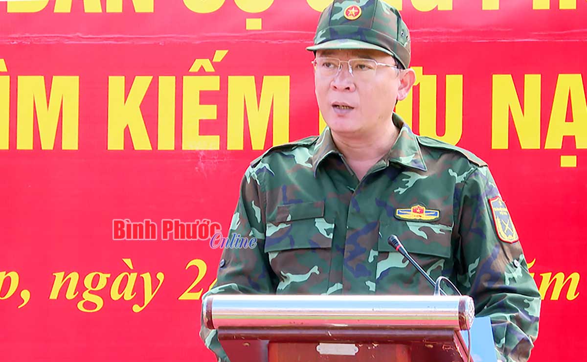 Bí thư Huyện ủy Bù Gia Mập Lý Trọng Nhân phát biểu khai mạc buổi diễn tập