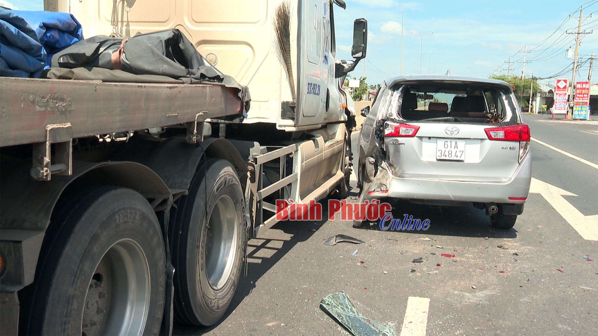Theo thông tin ban đầu, xe ô tô đầu kéo biển số 93C-052.26, kéo theo rơ mooc (chưa rõ danh tính tài xế) lưu thông hướng từ thị xã Chơn Thành đi huyện Hớn Quản. Khi đến km72, quốc lộ 13 thuộc phường Hưng Long đã tông vào hông đuôi xe ô tô 7 chỗ biển số 61A-348.47 đang lưu thông cùng chiều phía trước.