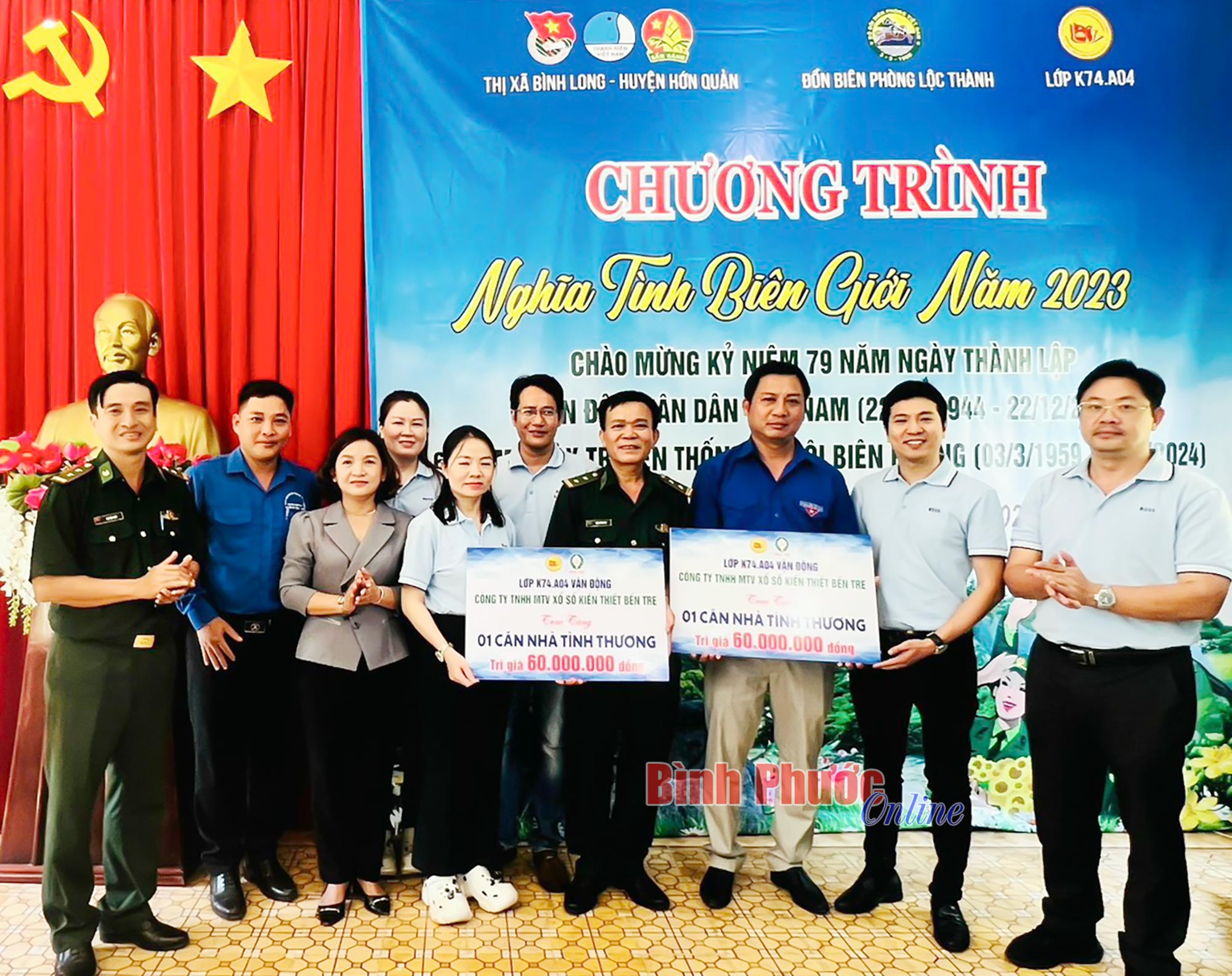Tại chương trình, đại diện lớp Cao cấp Lý luận chính trị K74.A04 và Công ty Xổ số kiến thiết tỉnh Bến Tre đã tặng 2 căn nhà tình thương cho 2 hộ dân có hoàn cảnh khó khăn tại thị xã Bình Long và huyện Lộc Ninh. Bên cạnh đó, ba đơn vị còn thực hiện chương trình vườn rau tăng gia sản xuất dành tặng cho cán bộ chiến sĩ Đồn Biên phòng Lộc Thành.