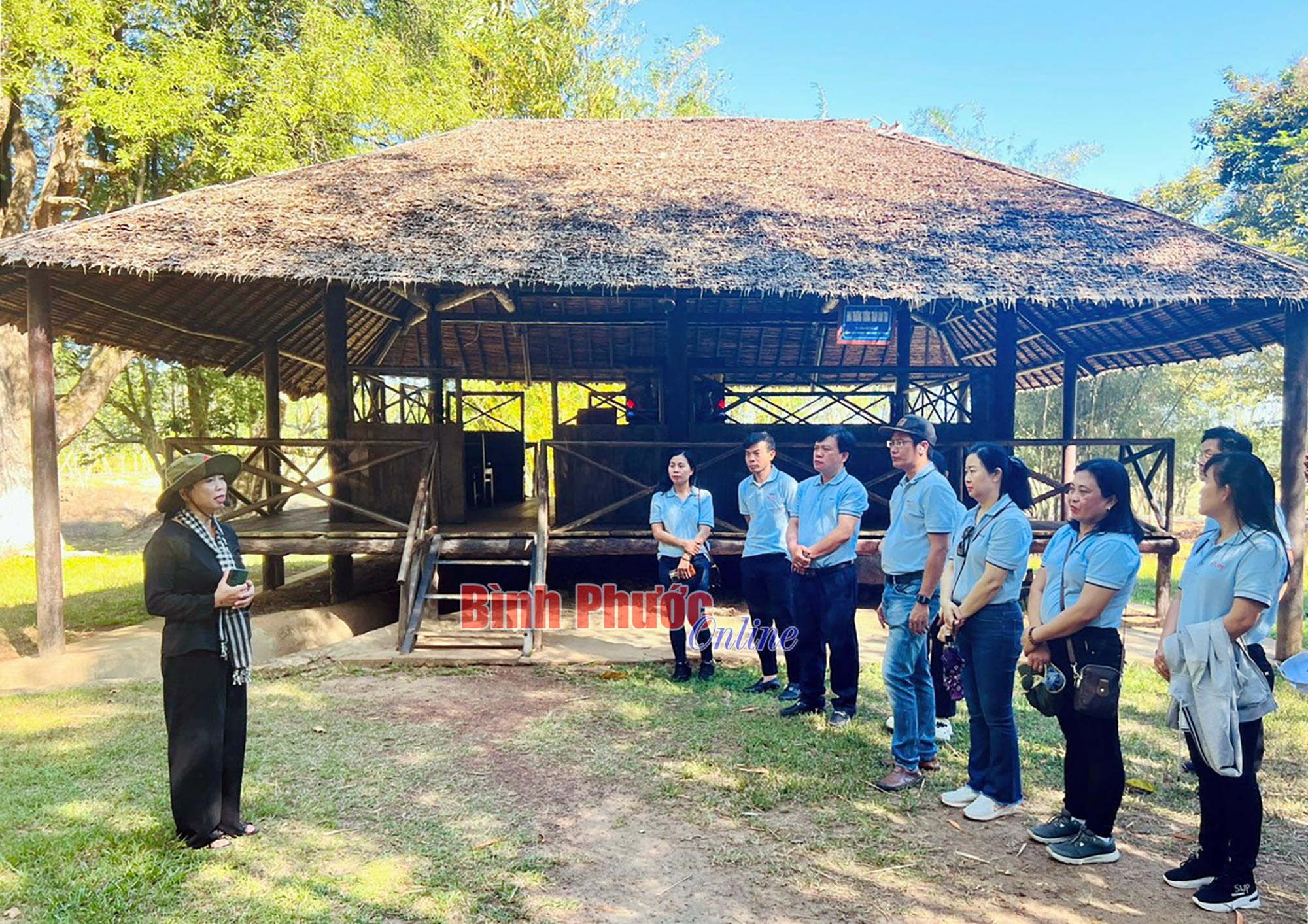 Đoàn học viên K74.A04 nghe thuyết minh về Khu di tích quốc gia đặc biệt Bộ Chỉ huy miền Tà Thiết