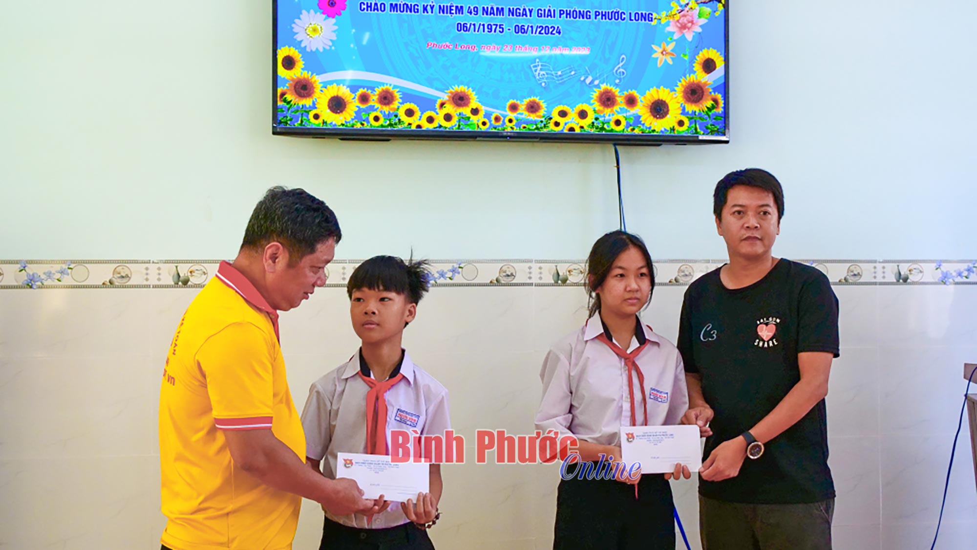 Các đơn vị tài trợ trao tặng 2 suất học bổng cho học sinh vượt khó học tốt của trường THCS Phước Bình