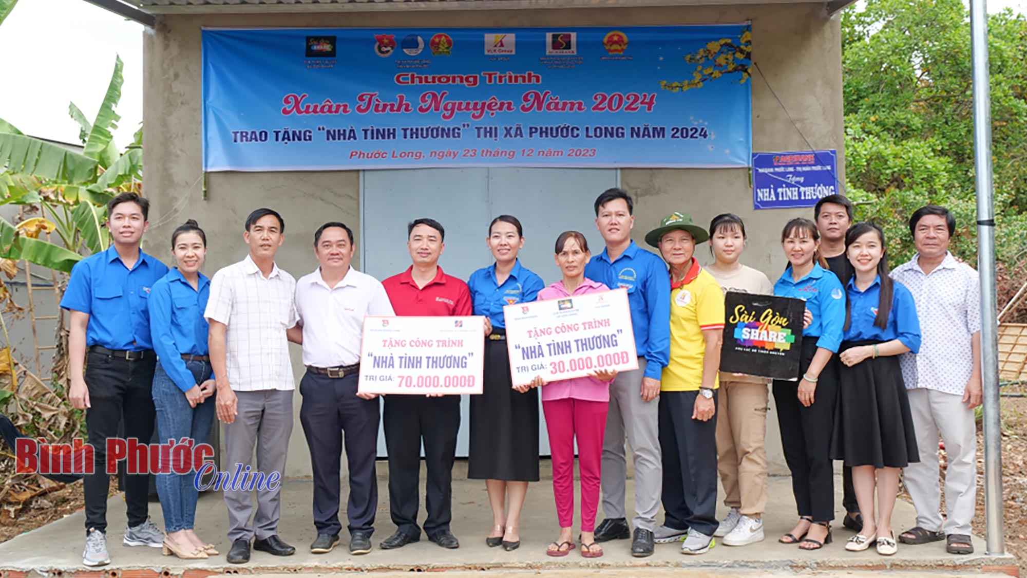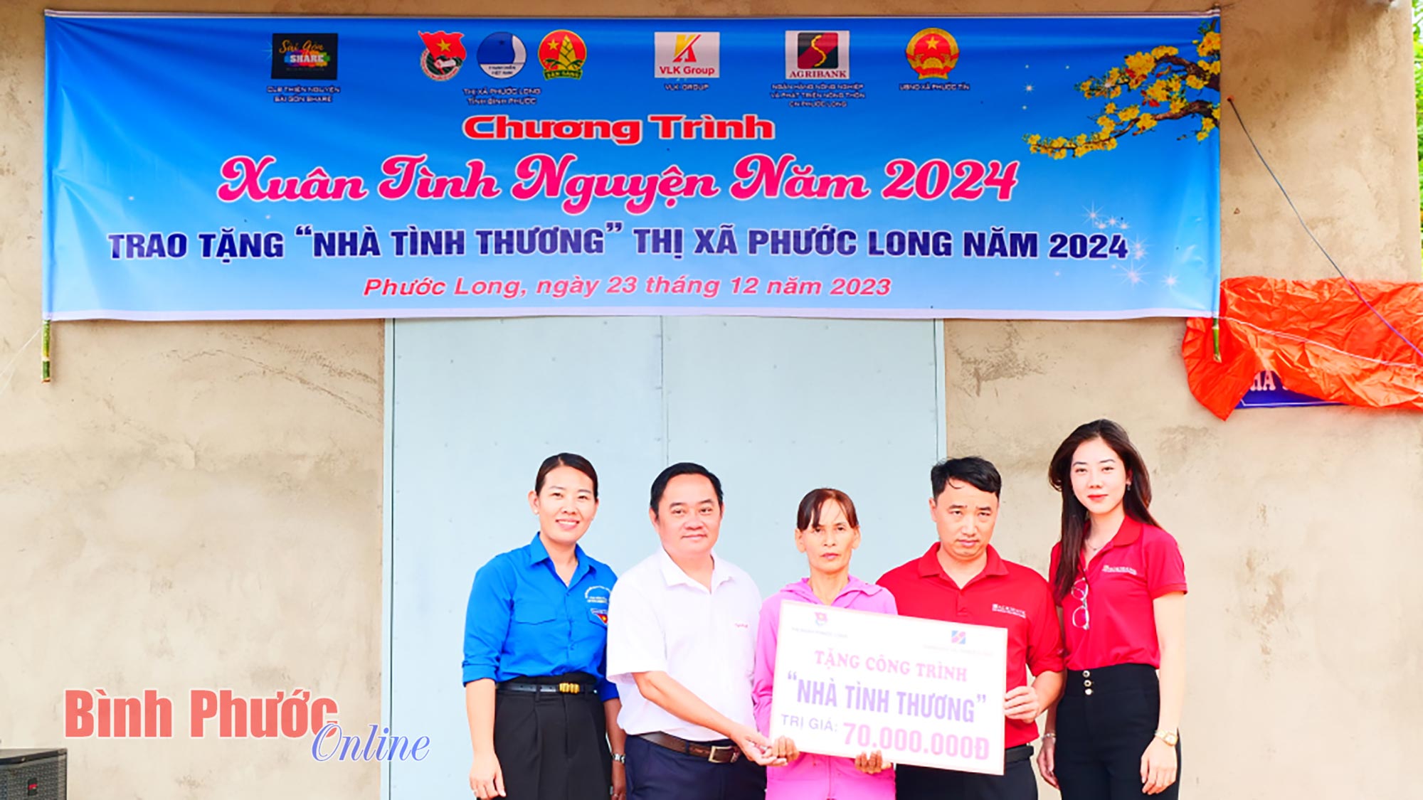 * Cũng trong hôm nay 23-12, Tỉnh Đoàn Bình Phước, Thị Đoàn Phước Long cùng Ngân hàng Nông nghiệp và Phát triển nông thôn thị xã Phước Long, Câu lạc bộ thiện nguyện Sài Gòn Share và UBND xã Phước Tín tổ chức trao tặng nhà tình thương cho hộ gia đình bà Trần Thị Dinh, ngụ thôn Phước Quả, xã Phước Tín, thị xã Phước Long.