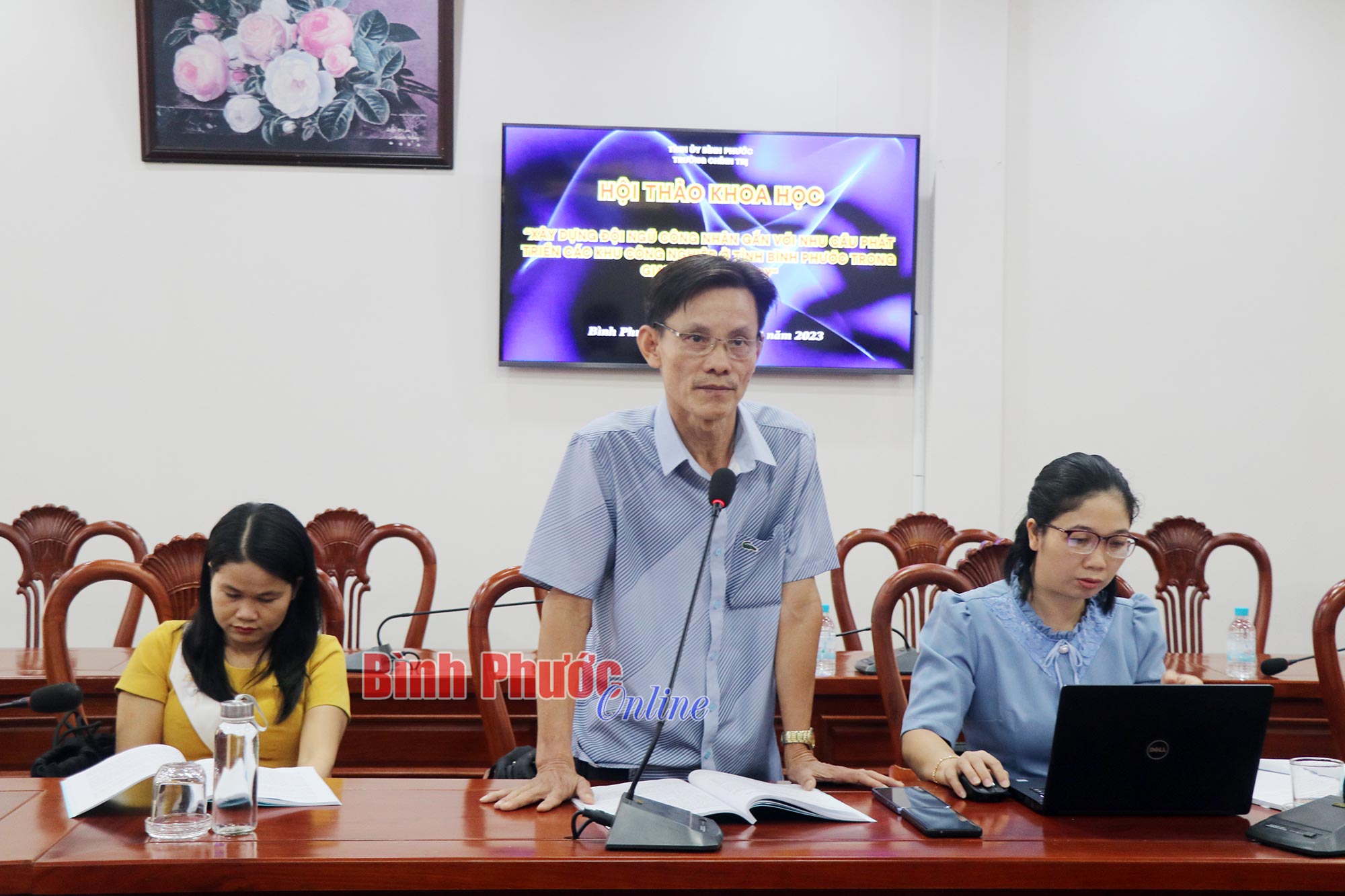 Các đại biểu dự hội thảo đã tập trung phân tích, làm rõ vai trò, tầm quan trọng, trực trạng của xây dựng đội ngũ công nhân gắn với nhu cầu phát triển các khu công nghiệp trên địa bàn tỉnh Bình Phước hiện nay; vai trò của chính quyền địa phương, các tổ chức chính trị - xã hội, tổ chức công đoàn trong việc xây dựng và phát triển đội ngũ công nhân. Đại biểu cũng phân tích, làm rõ nhu cầu tuyển dụng lao động; nhu cầu đào tạo, phát triển năng lực cho đội ngũ công nhân; năng lực, kỹ năng làm việc của đội ngũ công nhân; sự tác động của các chính sách thu hút đầu tư đối với việc tuyển dụng, đào tạo đội ngũ công nhân tại khu công nghiệp.