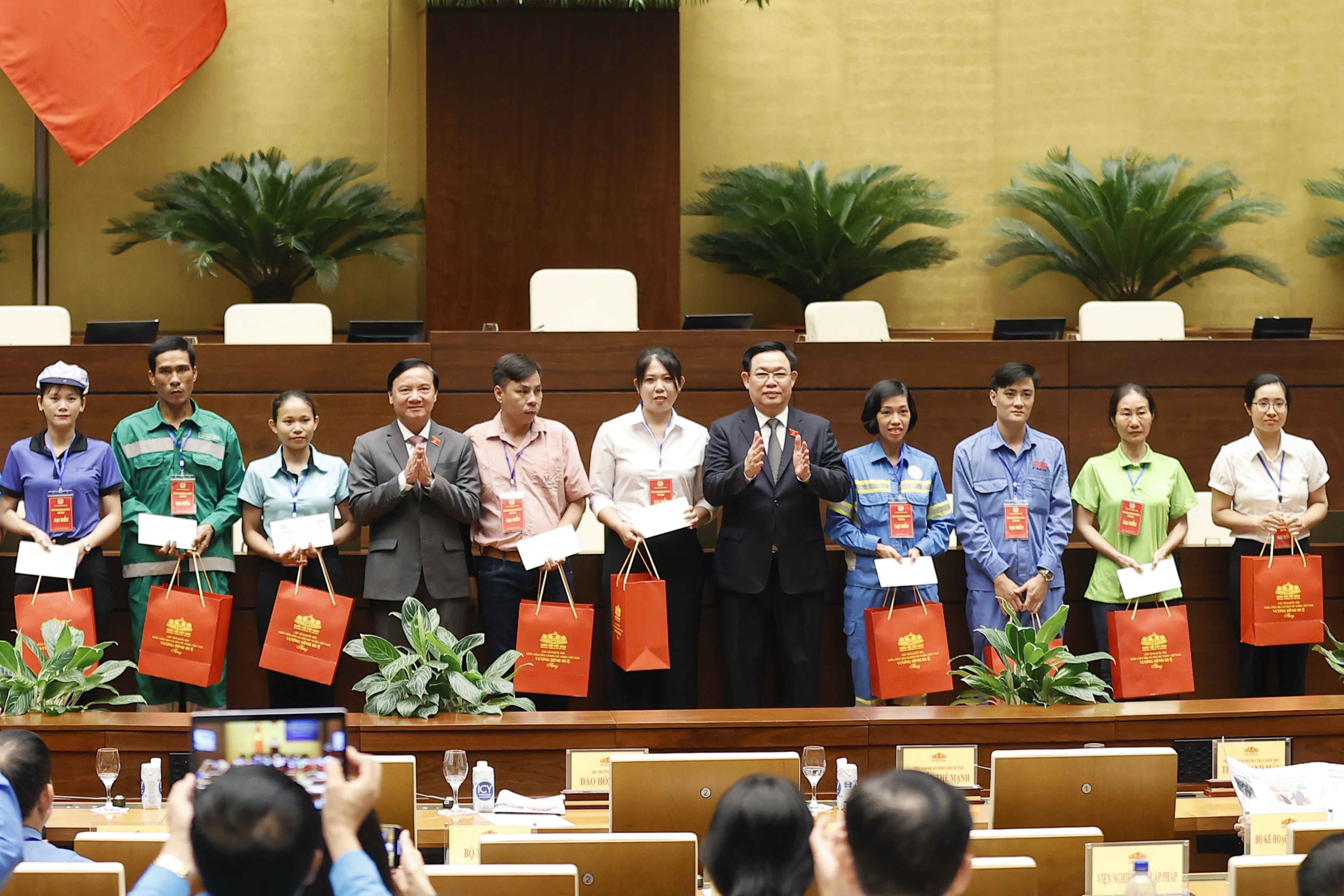 Chủ tịch Quốc hội Vương Đình Huệ chủ trì Diễn đàn người lao động năm 2023. (Ảnh: Doãn Tấn/TTXVN)