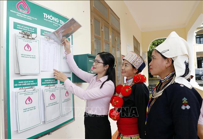 Chính sách cho vay, thông tin hộ vay được niêm yết công khai tại điểm giao dịch xã Đà Vị, huyện Na Hang, Tuyên Quang. Ảnh minh họa: Trần Việt/TTXVN