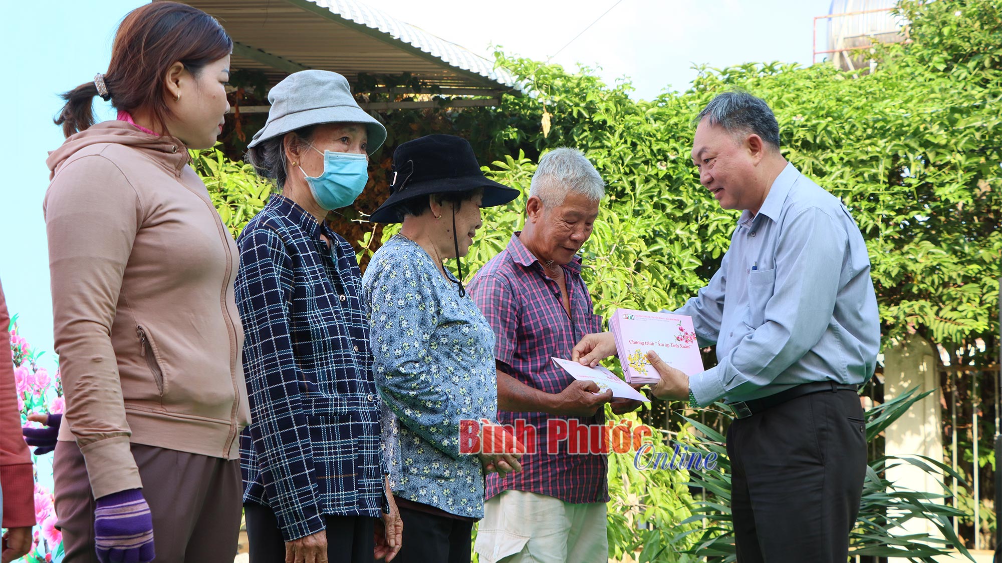 Ông Cao Minh Trực, Phó Giám đốc - Phó Tổng biên tập Đài Phát thanh - Truyền hình và Báo Bình Phước trao tặng 100 phần quà đến các hộ dân khó khăn xã Lộc Thiện tại chương trình