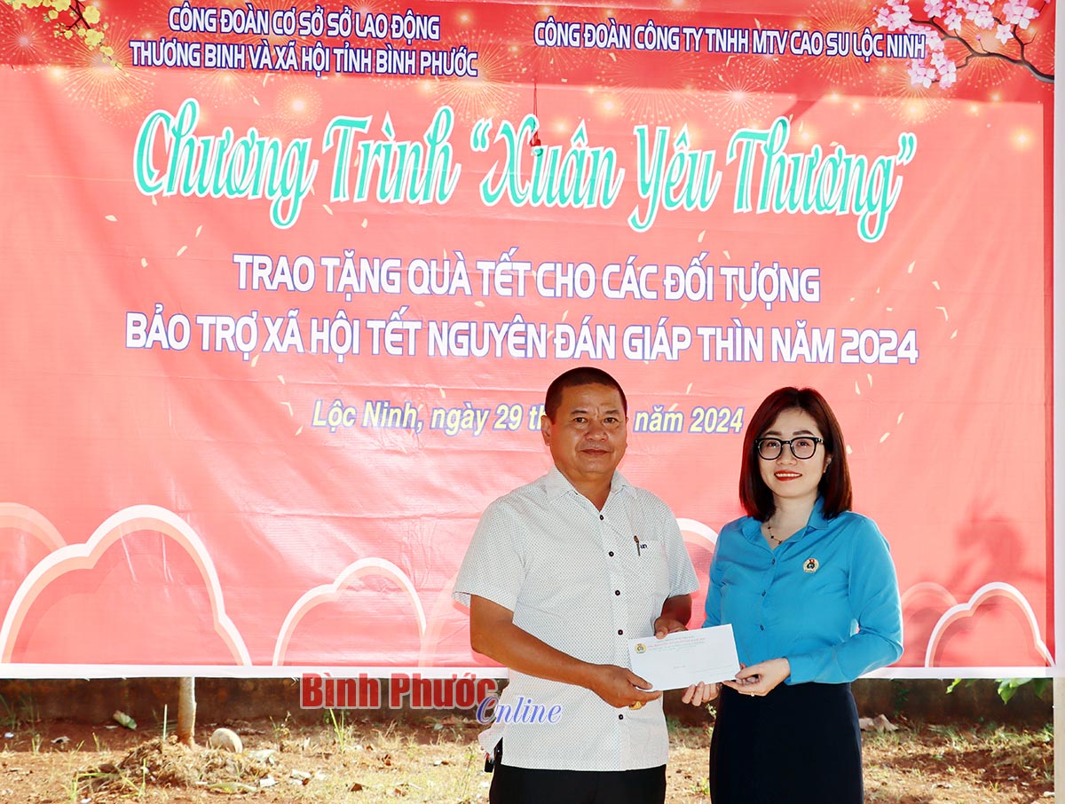 Công đoàn Công ty TNHH MTV Cao su Lộc Ninh trao tặng cán bộ, viên chức, người lao động Trung tâm Bảo trợ xã hội 5 triệu đồng vui xuân đón tết