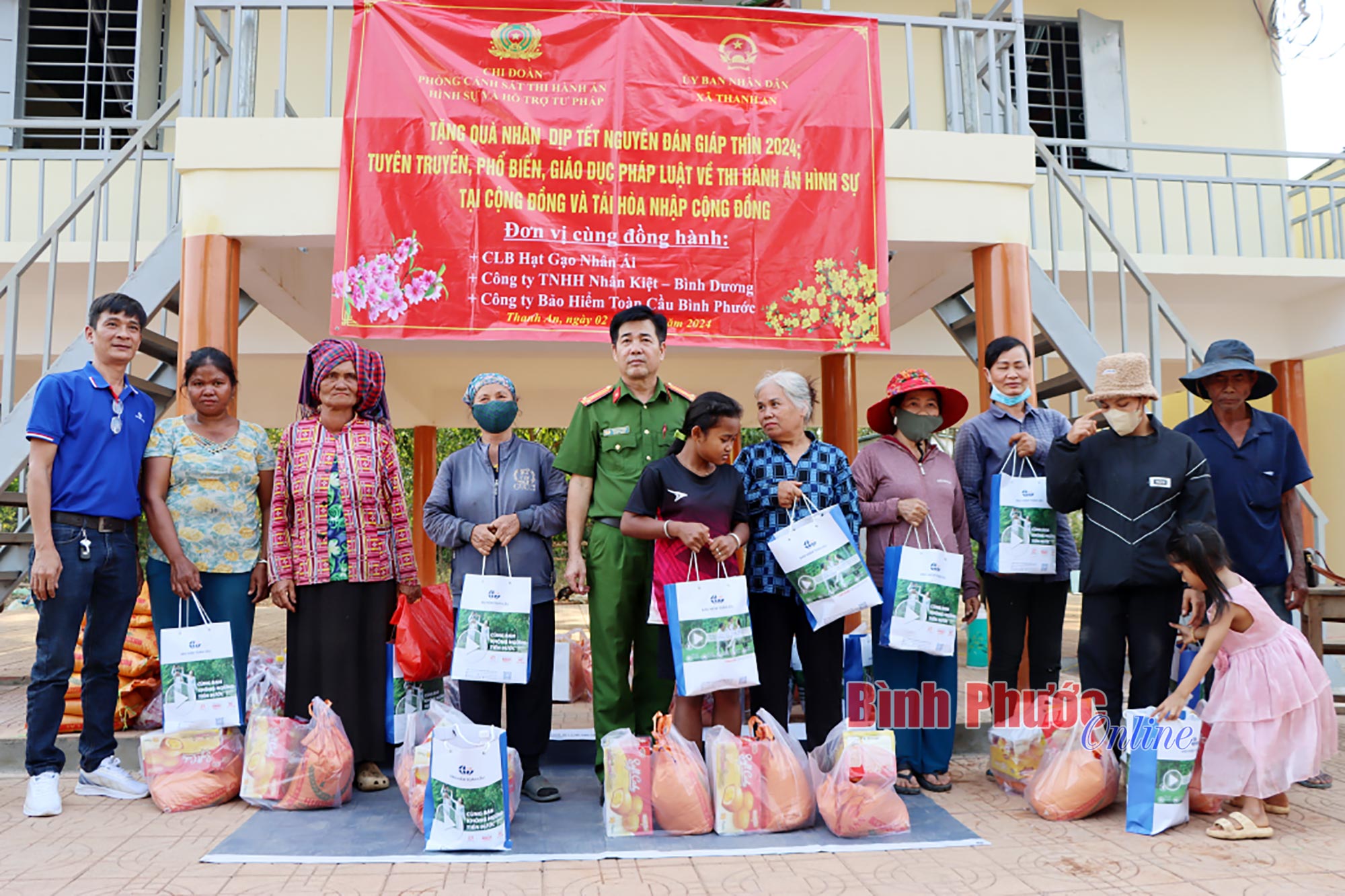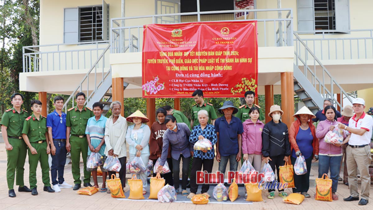 Trong dịp tết Nguyên đán Giáp Thìn 2024, 110 phần quà Tết đã được cán bộ Phòng Cảnh sát Thi hành án hình sự và Hỗ trợ tư pháp, Công an tỉnh Bình Phước trao tặng đến người dân