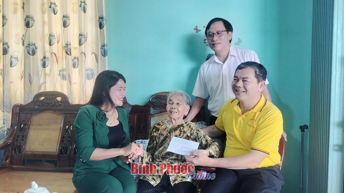 Đại diện lãnh đạo Đảng ủy Khối các cơ quan Trung ương tại TP. Hồ Chí Minh, Công ty Cổ phần Thủy điện Thác Mơ và lãnh đạo huyện Bù Đăng trao quà, chúc tết Mẹ Việt Nam anh hùng Trần Thị Bảy