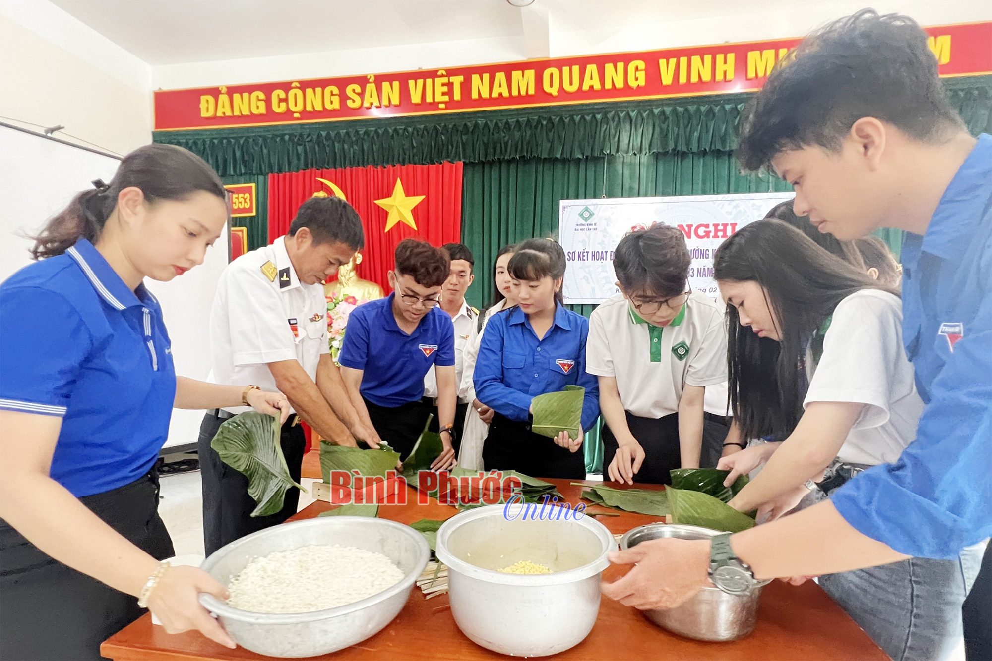 Cán bộ, chiến sĩ Tiểu đoàn 553 và đơn vị kết nghĩa gói bánh chưng
