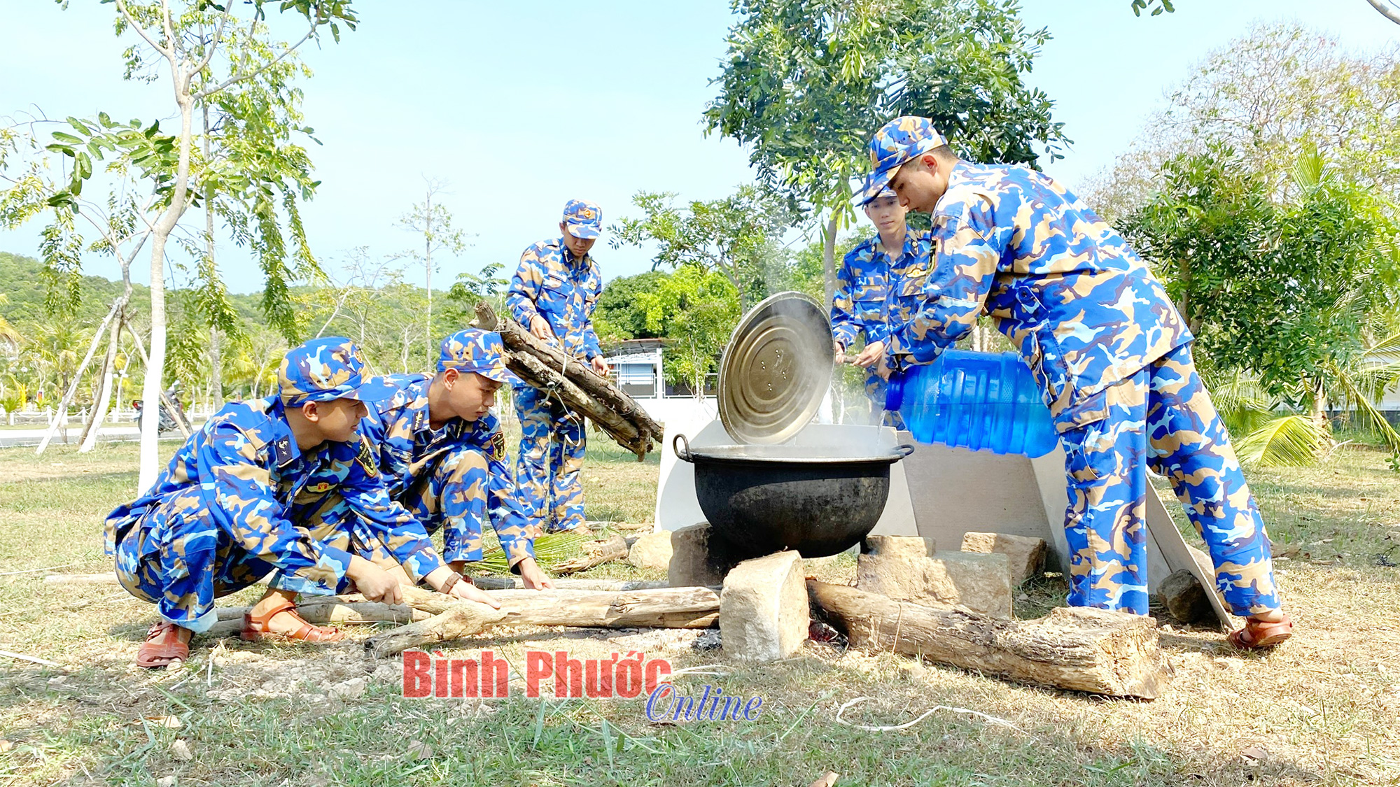 Các chiến sĩ Đại đội 20, Phòng tham mưu, Vùng 5 Hải quân nấu bánh chưng