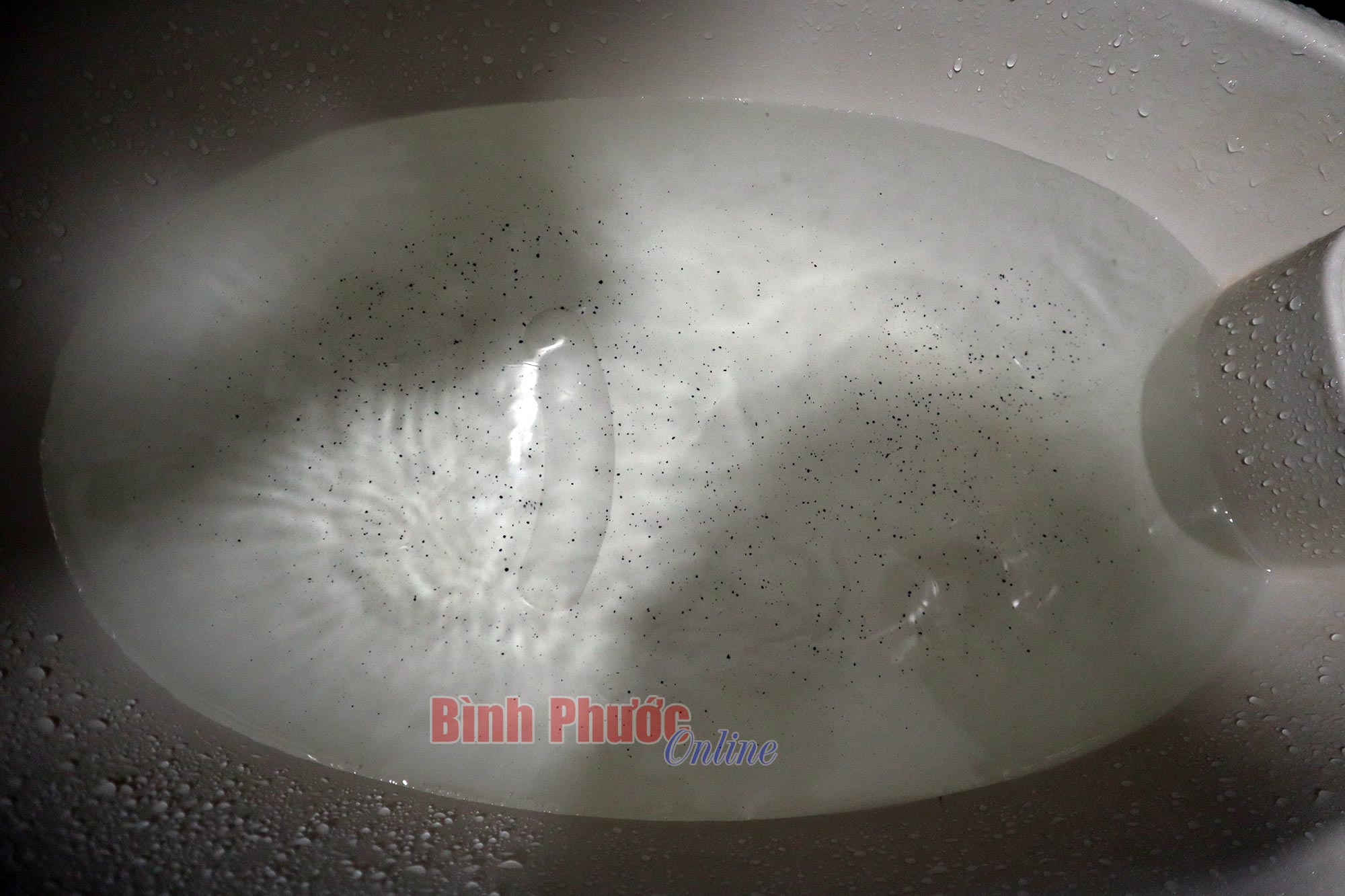 Nước của một hộ dân trên địa bàn phường Tân Phú sáng ngày 16-2, nước đã trong nhưng vẫn có cặn đen