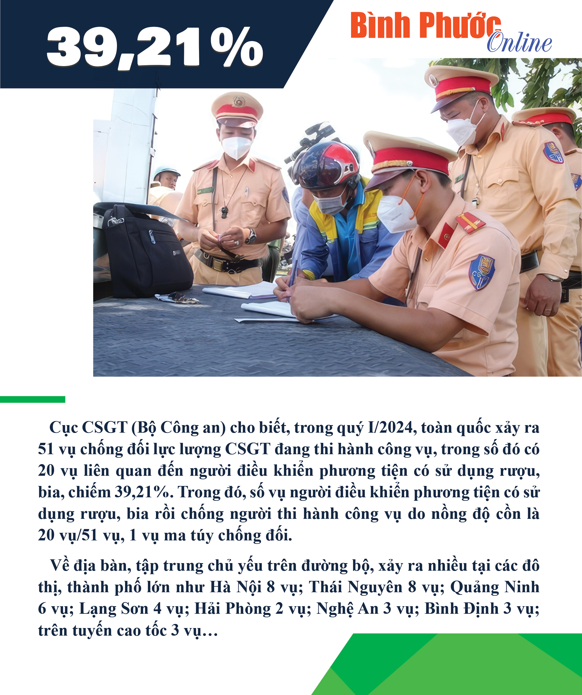 Gần 40% số vụ chống lực lượng CSGT đang thi hành công vụ có liên quan đến nồng độ cồn
