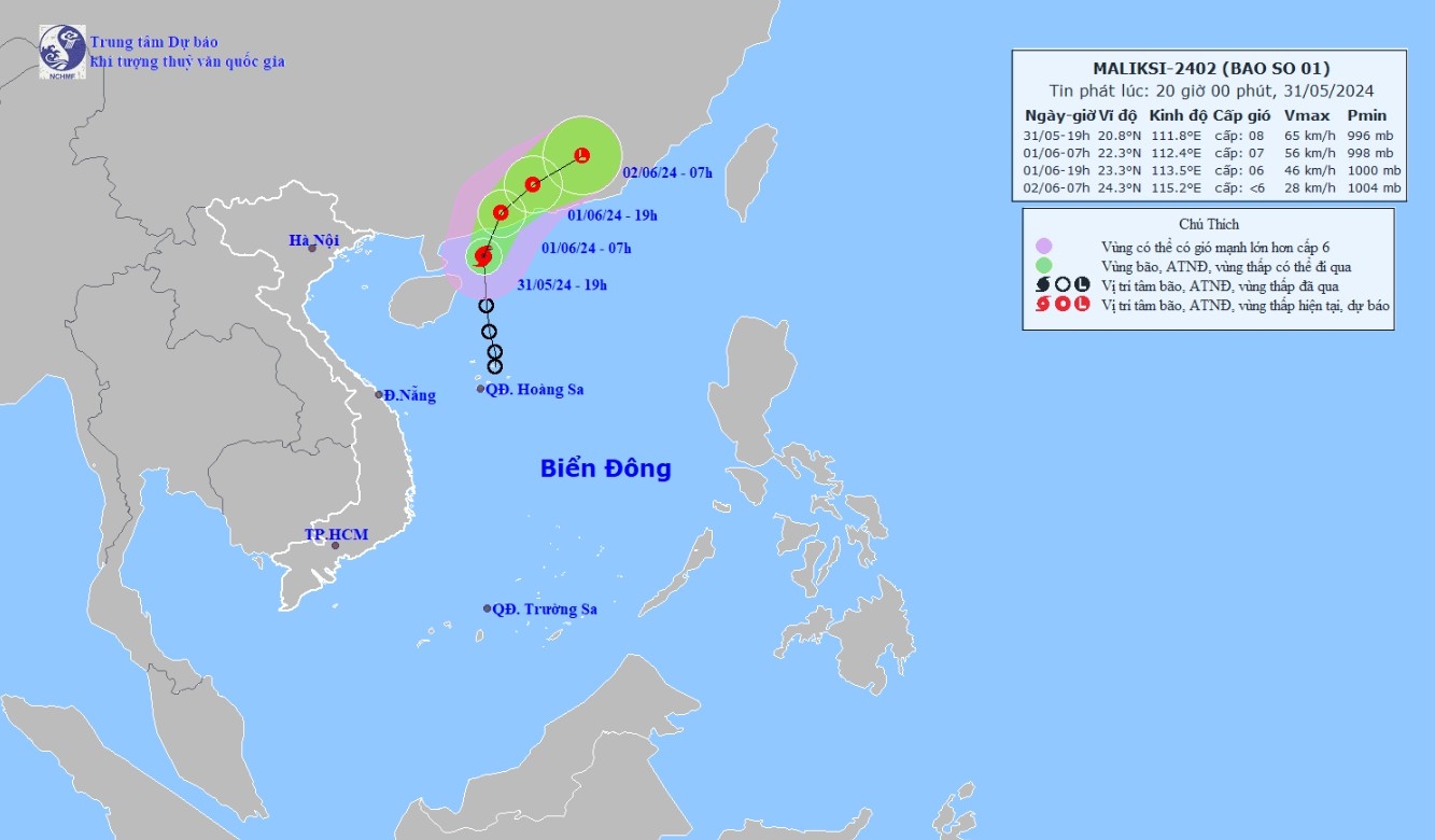 Đến 16 giờ ngày 1-6, áp thấp nhiệt đới di chuyển theo hướng Đông Bắc với tốc độ 10-15 km/giờ trên đất liền phía Nam tỉnh Quảng Đông (Trung Quốc) với sức gió mạnh cấp 6, giật cấp 8.