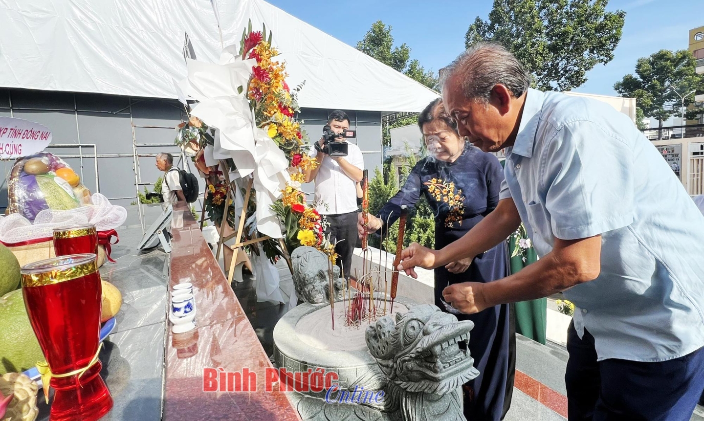 Nguyên Phó Chủ tịch nước Trương Mỹ Hoa và nguyên Phó Thủ tướng chính phủ Trương Hòa Bình thắp hương trong lễ kỷ niệm