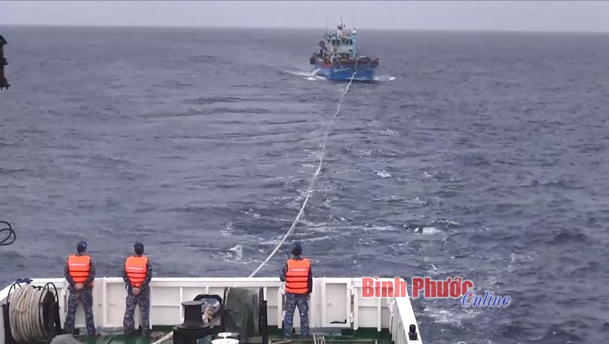 Tàu 474 sau đó đã cơ động đến đảo Đá Lớn, lai kéo tàu BTh 95968 TS về bờ an toàn.