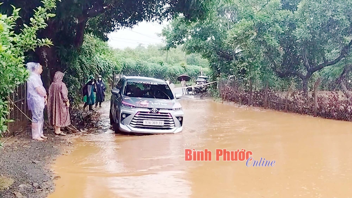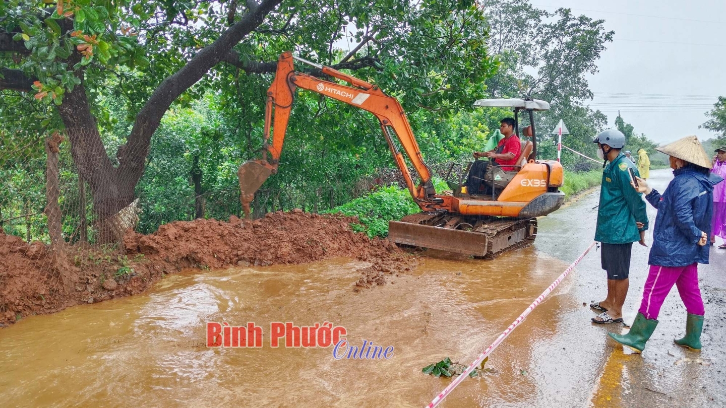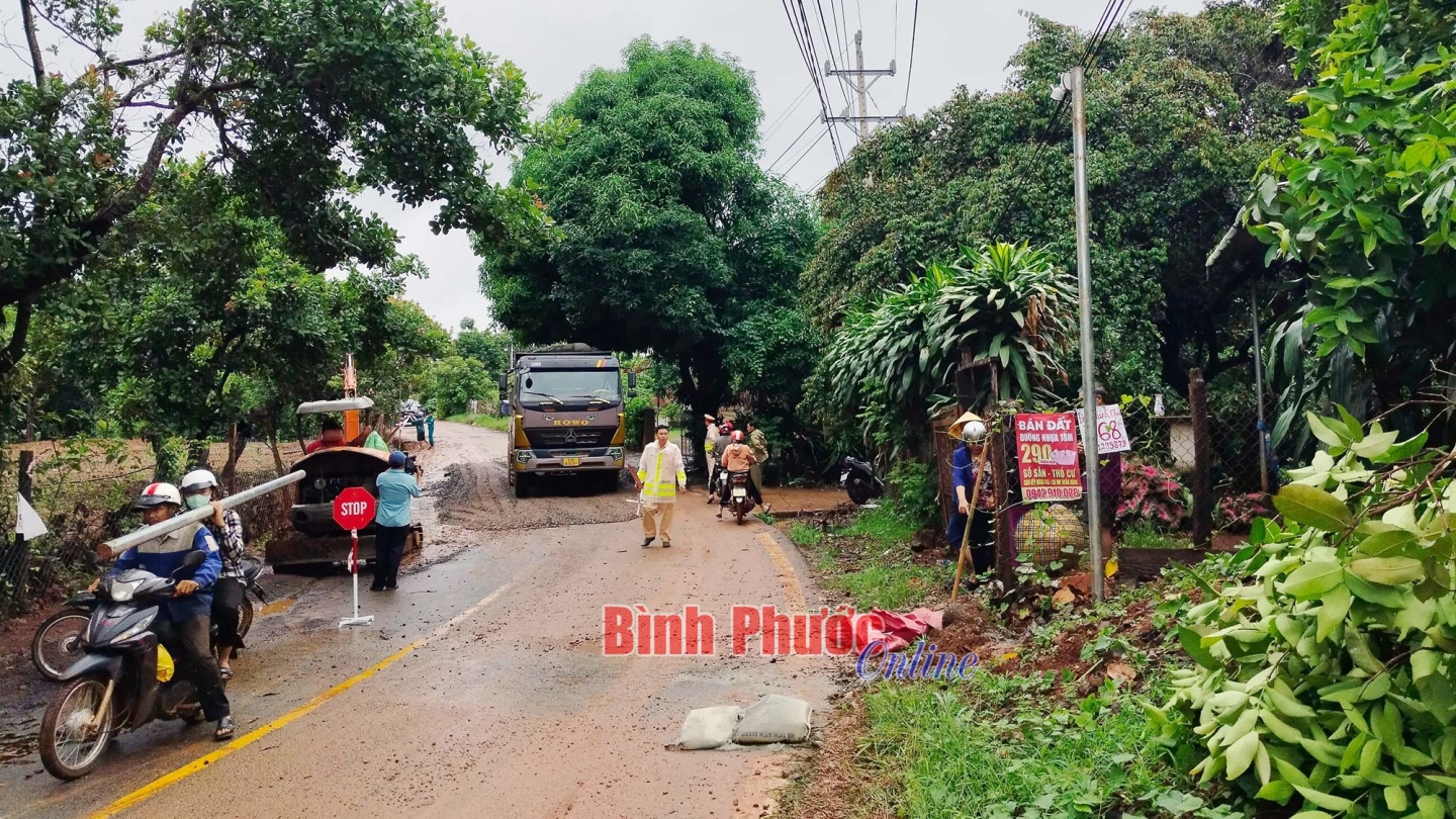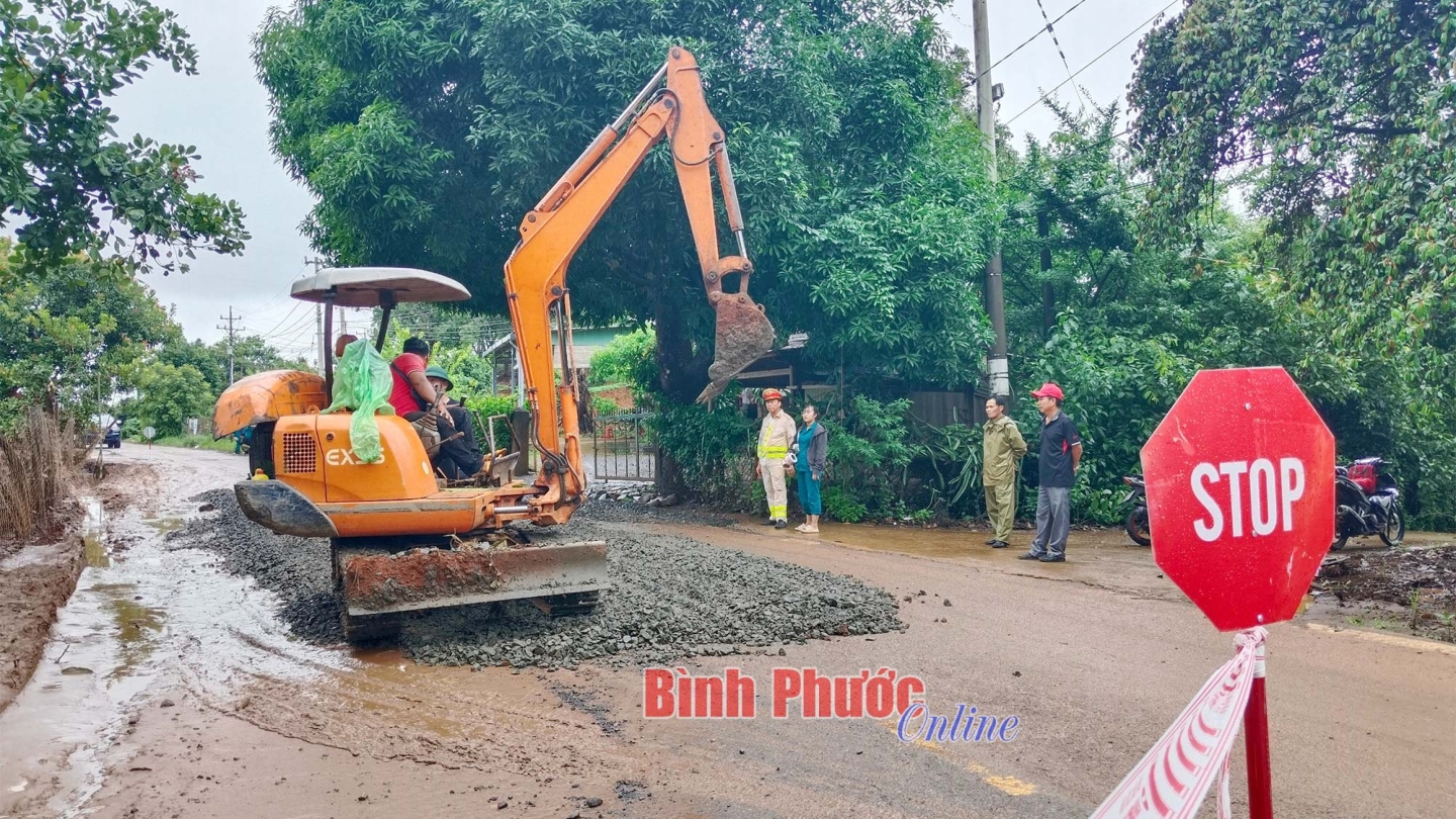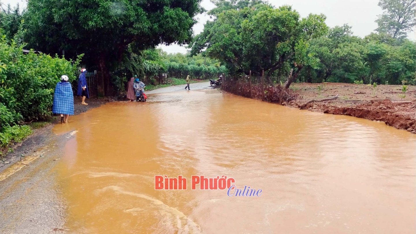 Huyện Bù Đăng triển khai các biện pháp khắc phục tình trạng ngập kéo dài khi mưa lớn trên tuyến đường liên xã Đoàn Kết - Đồng Nai, đoạn ngã ba Vườn Chuối