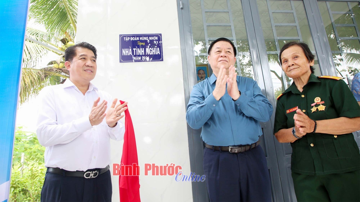 Ủy viên Bộ Chính trị, Trưởng ban Tuyên giáo Trung ương Nguyễn Trọng Nghĩa; Bí thư Tỉnh ủy, Chủ tịch HĐND tỉnh Tây Ninh Nguyễn Thành Tâm và Chủ tịch HĐQT Tập đoàn Hùng Nhơn Vũ Mạnh Hùng dự lễ trao nhà tình nghĩa