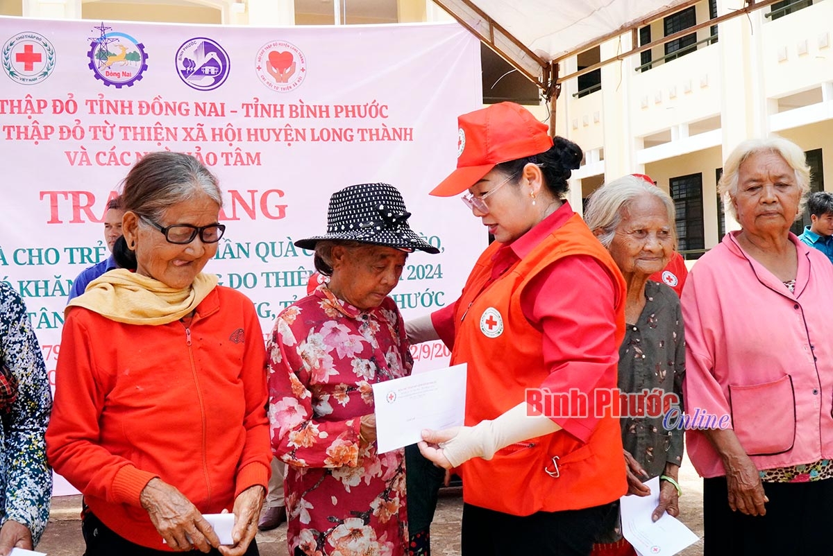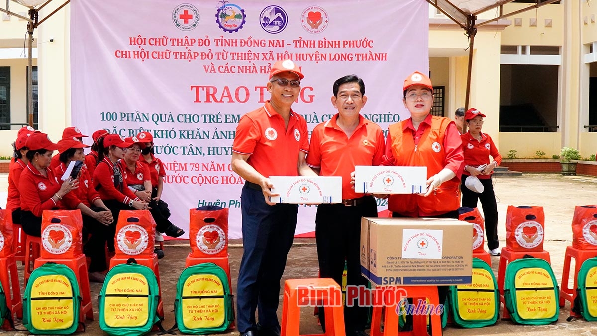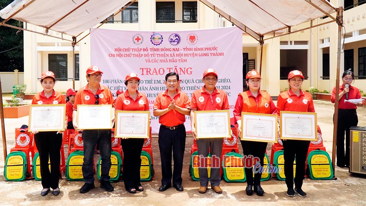 Hội Chữ thập đỏ tỉnh Đồng Nai còn trao tặng Hội Chữ thập đỏ tỉnh Bình Phước thuốc bổ mắt, vitamin C, viên sủi. Tổng trị giá chương trình 170 triệu đồng.