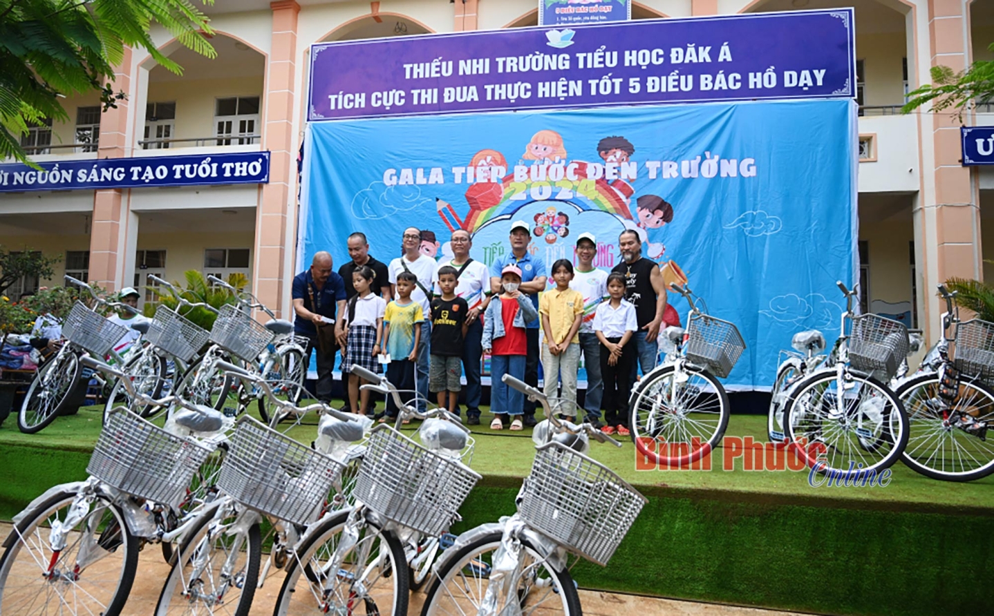 Đoàn đã tặng 390 phần quà gồm bánh, kẹo, sữa, cặp sách, áo quần đồng phục; tặng 12 xe đạp, trang thiết bị trong thư viện sách gồm máy tính, sách, bàn ghế, khu bồn rửa tay cho cô, trò Trường tiểu học Đăk Á. Tổng số quà, hiện vật tặng cho trường trị giá khoảng 150 triệu đồng. Đây là sự động viên, tiếp sức không nhỏ cho cô, trò Trường tiểu học Đăk Á trước thềm năm học mới 2024-2025.