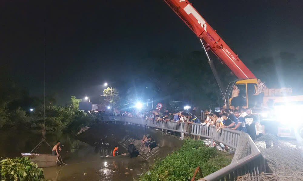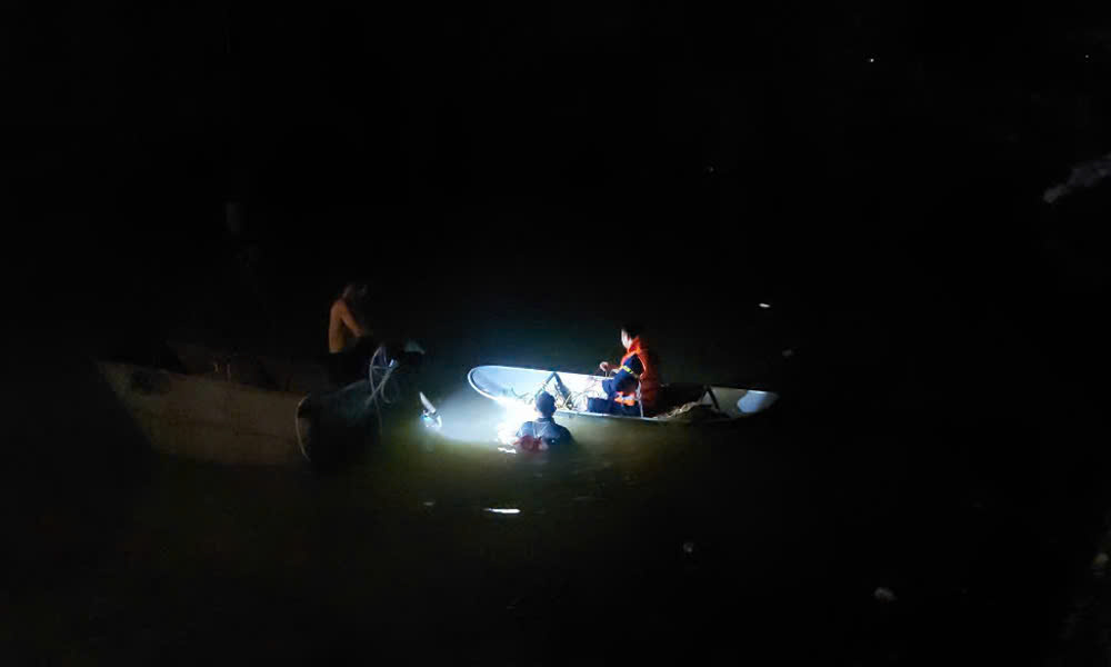 Từ chiều 12-9, sự cố tại Trạm bơm Cống Bún (TP Bắc Giang) được phát hiện. Nhằm bảo vệ an toàn cho trạm bơm và đê sông Thương, lực lượng chức năng cùng người dân xuyên đêm khắc phục sự cố. Dưới đây là một số hình ảnh: | "Người nhái" kiểm tra cánh cống khu vực Trạm bơm Cống Bún. |