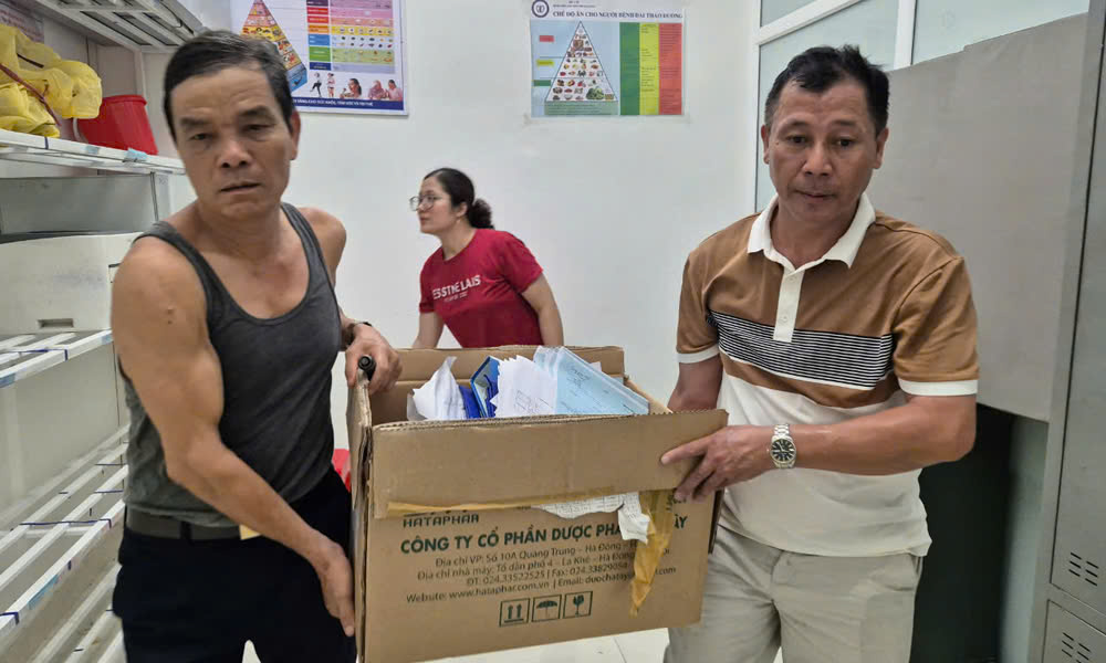 | Đề phòng tình huống ngập lụt khi Trạm bơm Cống Bún gặp sự cố, Bệnh viện Nội tiết tỉnh ở xã Tân Mỹ di chuyển vật tư lên vị trí cao hơn. |