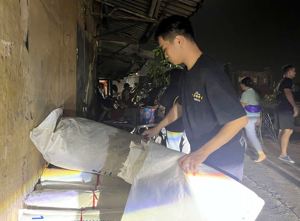 | Gia đình anh Phạm Đăng Nên ở xã Ngọc Châu (Tân Yên) ủng hộ hơn 1,5 nghìn chiếc bao tải để đựng cát, vật liệu. |