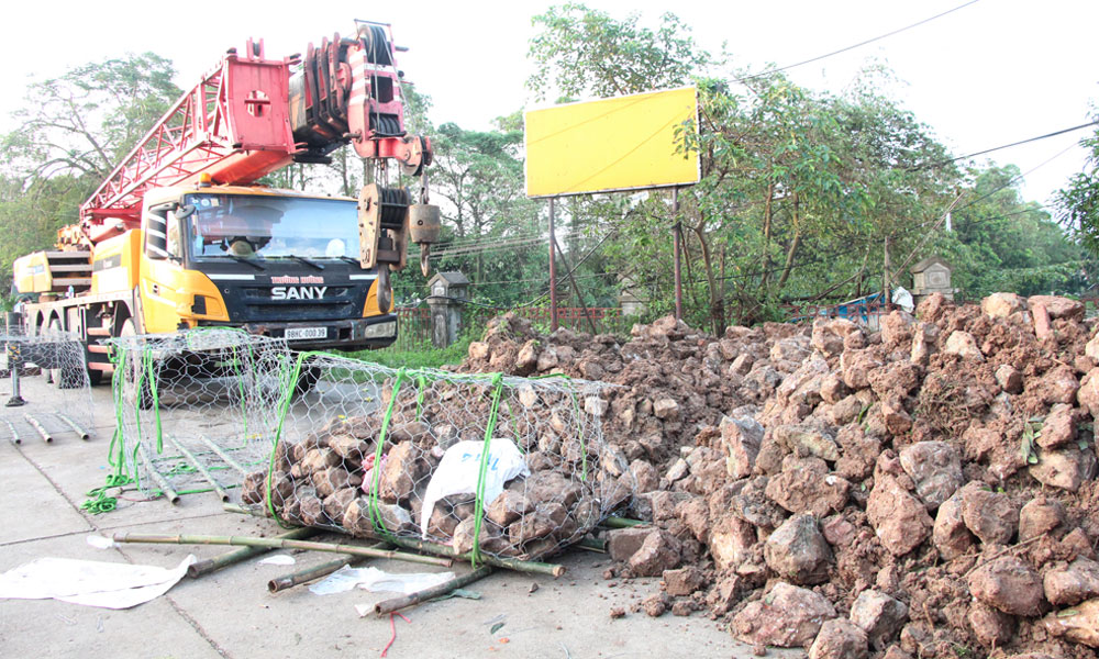 Có mặt tại khu vực trạm bơm vào sáng sớm nay, chúng tôi thấy nguyên vật liệu đã được tập kết như: Sắt, thép, đất, đá… để tiếp tục khắc phục sự cố.