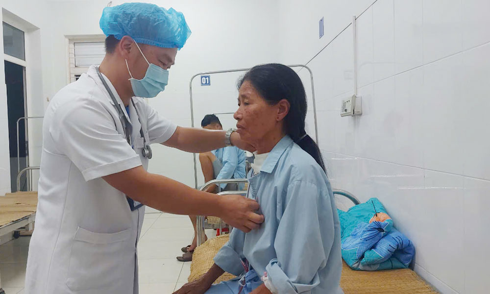 | Bệnh nhân điều trị nội trú tại Bệnh viện Nội tiết tỉnh được chuyển lên tầng 2 để bảo đảm an toàn. |