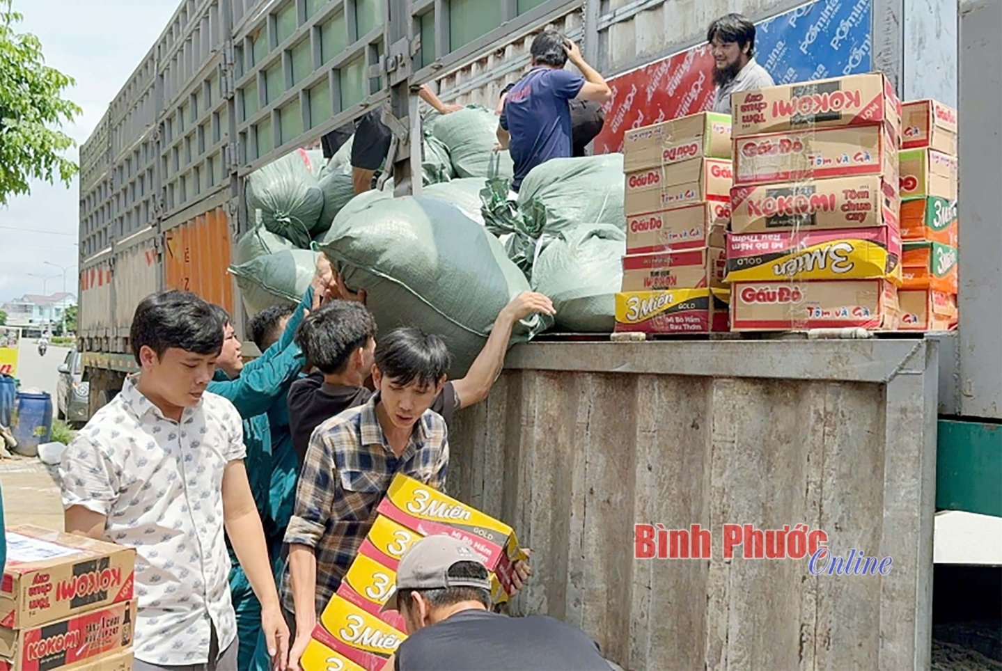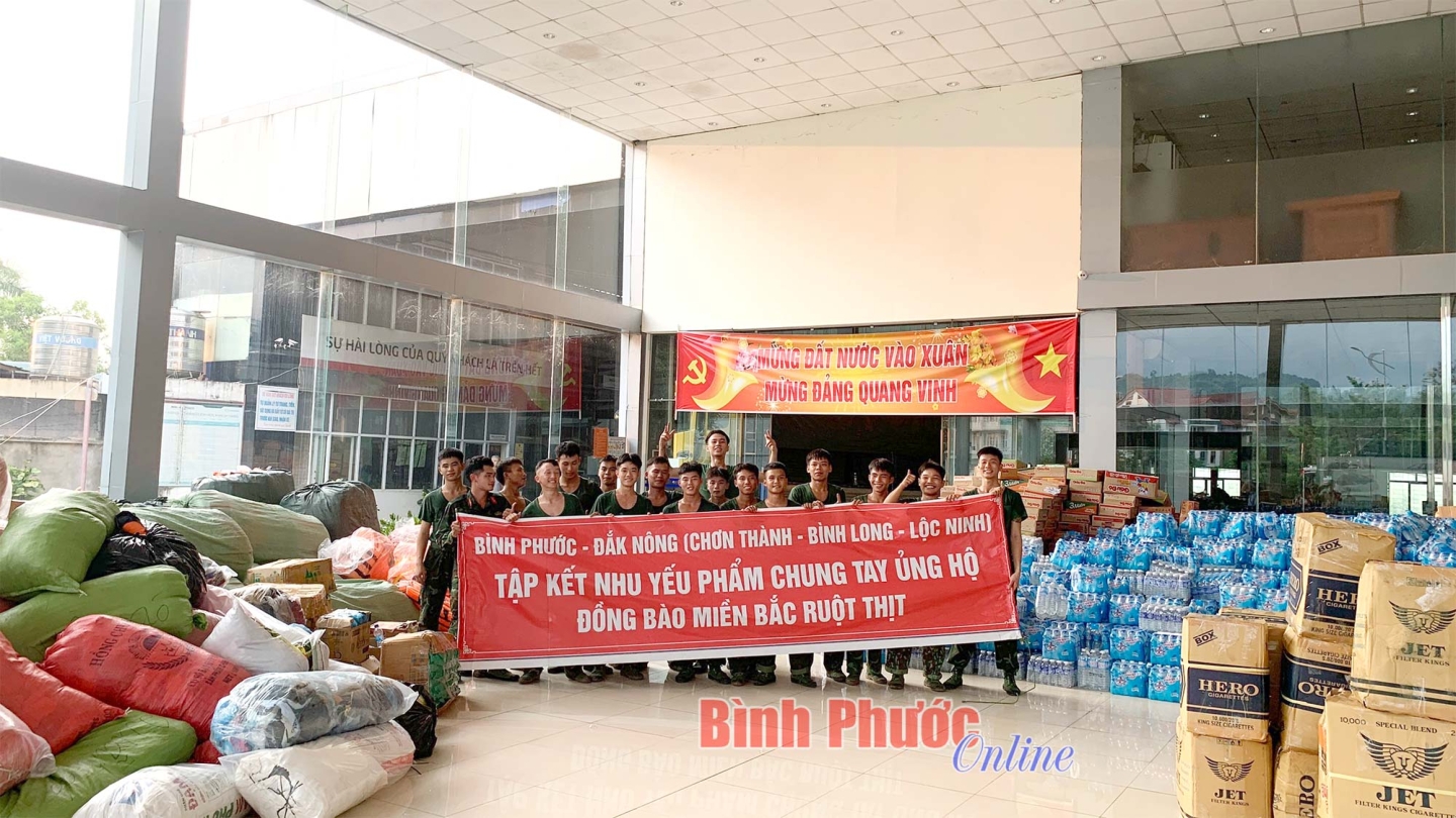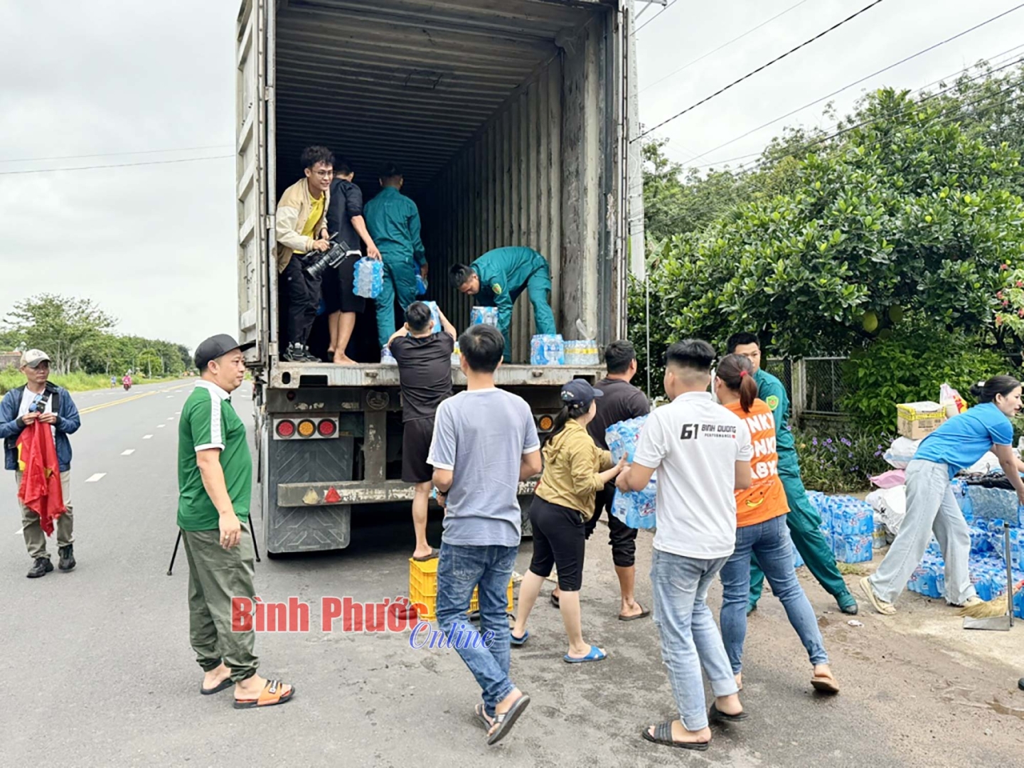 Hưởng ứng lời kêu gọi của Ủy ban MTTQ Việt Nam tỉnh Bình Phước, những ngày qua, đông đảo người dân, các hội đoàn thể, cùng doanh nghiệp đã đến đóng góp trực tiếp hoặc gửi về Ủy ban MTTQ Việt Nam các cấp để hỗ trợ đồng bào miền Bắc khắc phục hậu quả mưa bão, lũ lụt. Một số địa phương đã huy động được hàng trăm tấn hàng hóa để kịp thời chuyển ra miền Bắc. Trong đó tại thị xã Chơn Thành, từ ngày 11-9 đến nay, toàn thị xã đã huy động được 20 chuyến với tổng 500 tấn hàng hóa, nhu yếu phẩm, vật dụng cần thiết, tổng trị giá khoảng 5 tỷ đồng.