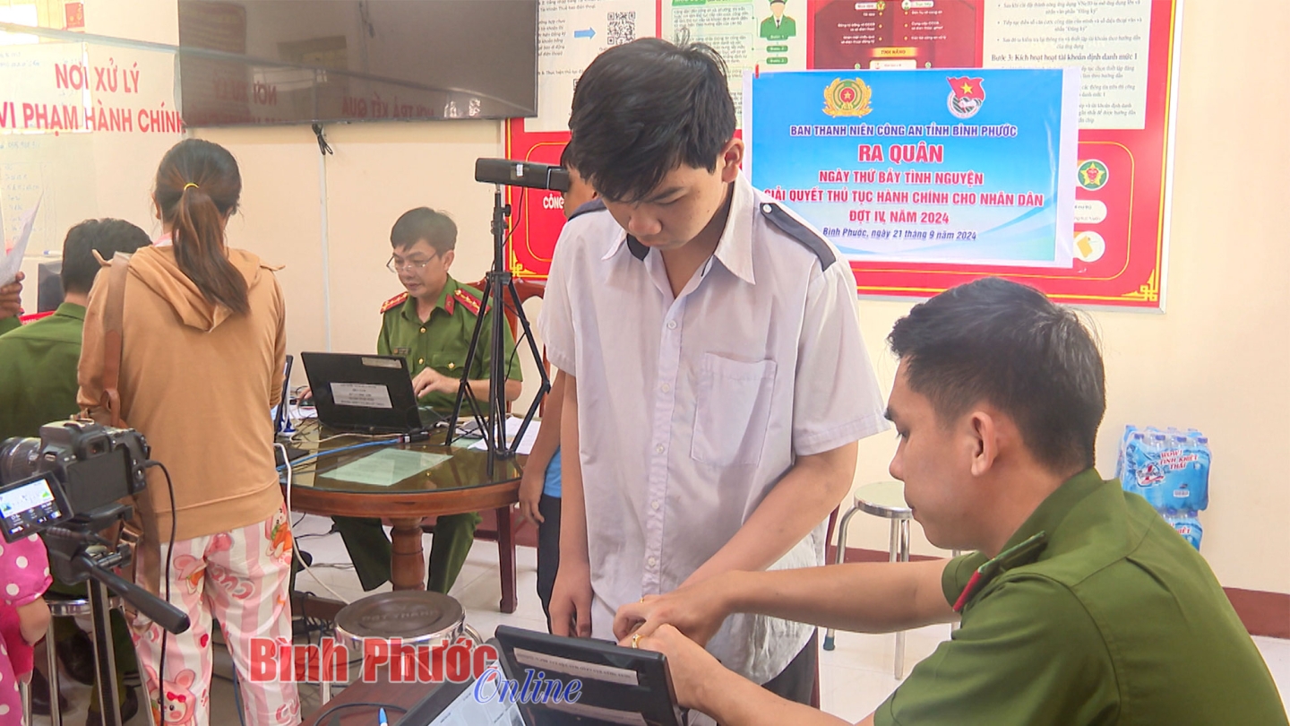 Công an thị xã Chơn Thành ra quân “Ngày thứ Bảy tình nguyện” tiếp nhận hồ sơ cấp căn cước và tài khoản định danh điện tử cho công dân từ đủ 6 đến 14 tuổi