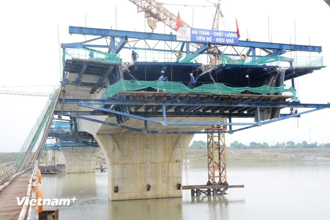 Các nhà thầu nỗ lực thi công "3 ca, 4 kíp", tăng cường nhân lực, máy móc để rút ngắn tiến độ hoàn thành dự án giao thông. (Ảnh: Việt Hùng/Vietnam+)Cụ thể, trên tuyến cao tốc Bắc-Nam phía Đông giai đoạn 2021-2025 đang triển khai, có 6 dự án thành phần phấn đấu hoàn thành ngày 30-4-2025 gồm: Bãi Vọt-Hàm Nghi, Hàm Nghi-Vũng Áng, Vũng Áng-Bùng, Bùng-Vạn Ninh, Vạn Ninh-Cam Lộ, Vân Phong-Nha Trang. Có 3 dự án thành phần phấn đấu hoàn thành ngày 30-9-2025 gồm: Hoài Nhơn-Quy Nhơn, Quy Nhơn-Chí Thạnh, Chí Thạnh-Vân Phong.