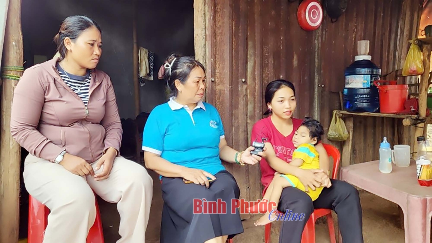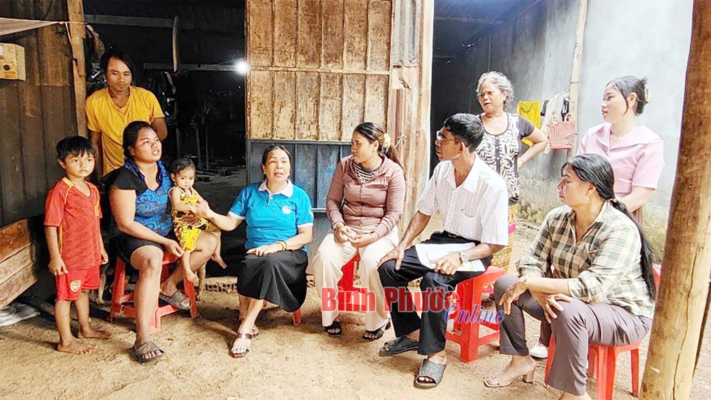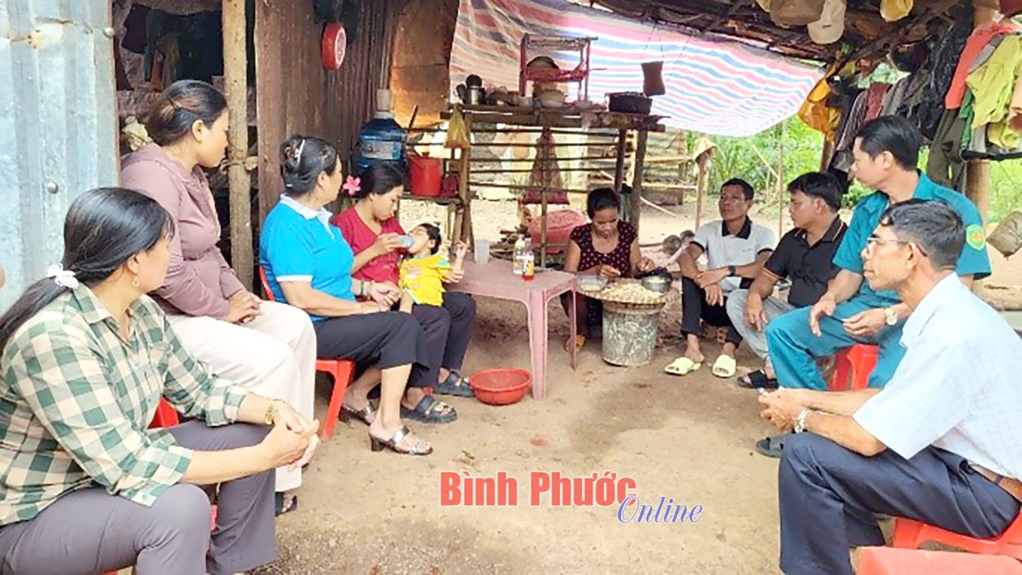 Tổ truyền thông cộng đồng thôn 6, xã Long Tân, huyện Phú Riềng lắng nghe tâm tư, chia sẻ của chị Thị Sanh về sinh nhiều con và kế hoạch hóa gia đình