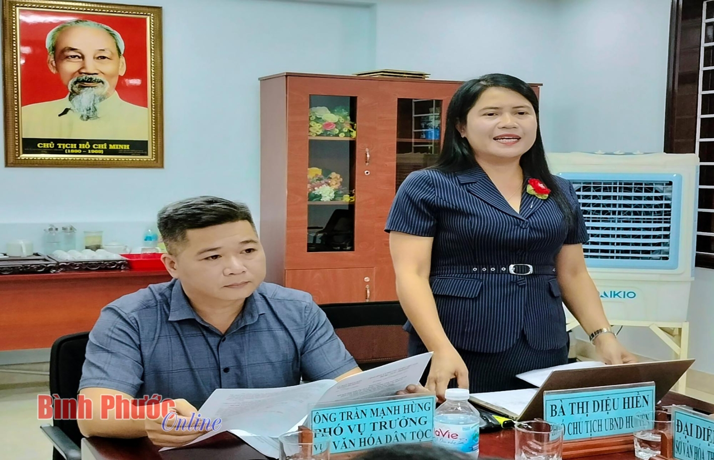 Phó Chủ tịch UBND huyện Bù Đăng Thị Diệu Hiền báo cáo kết quả thực hiện Dự án 6 trên địa bàn huyện