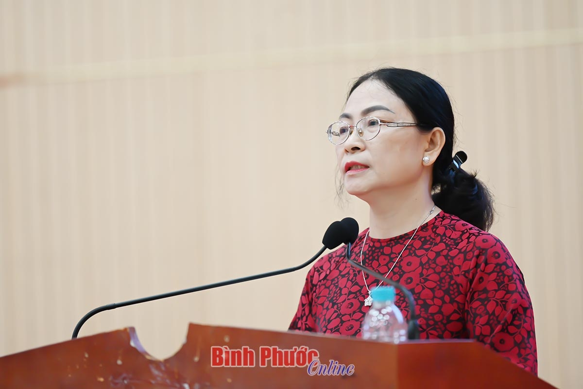 Bà Nguyễn Thị Thanh Trúc, Phó Chủ tịch Hội LHPN tỉnh Bình Phước phát biểu tại diễn đàn