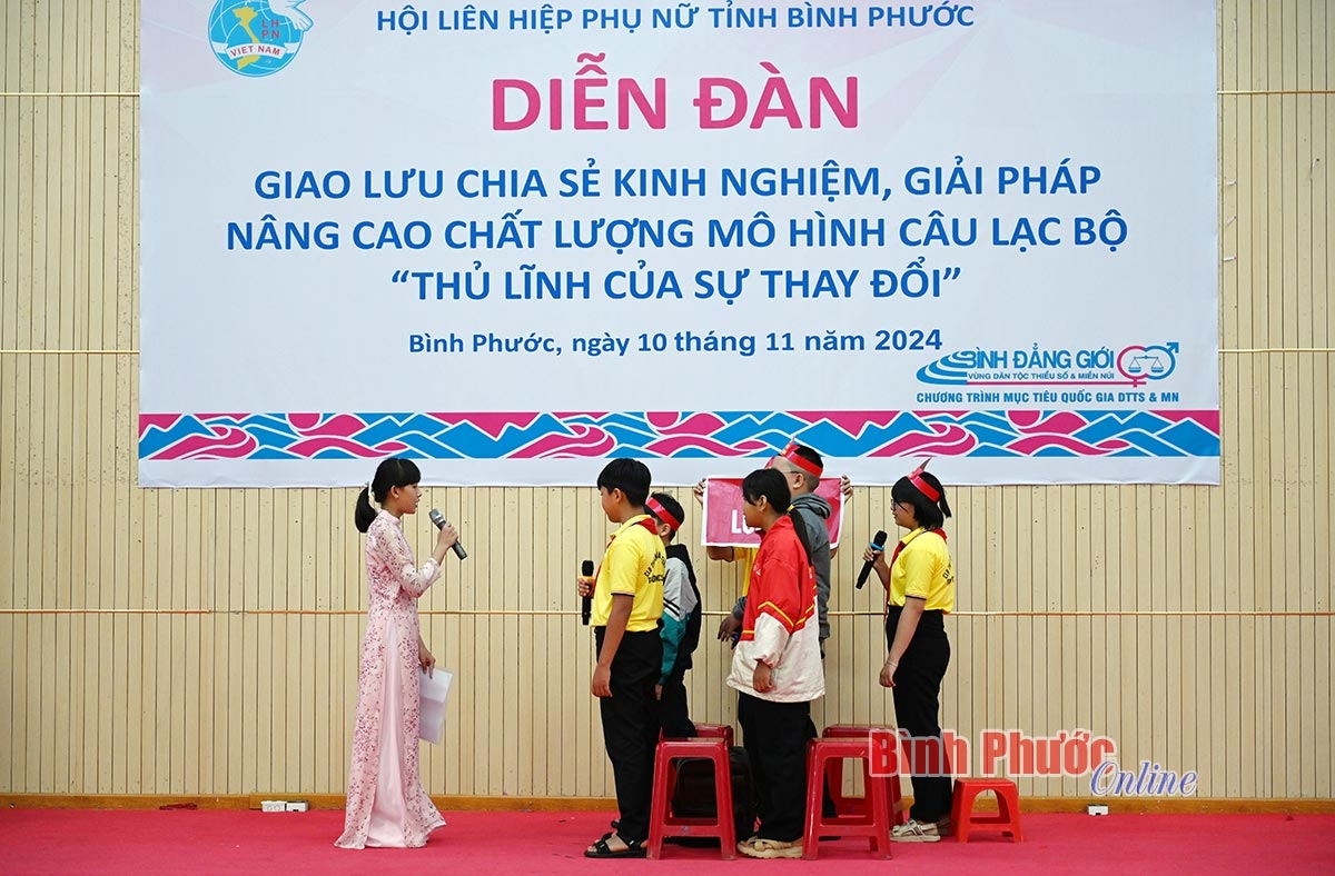 Tại diễn đàn, thành viên của 9 Câu lạc bộ “Thủ lĩnh của sự thay đổi“ đến từ 3 huyện Lộc Ninh, Bù Đốp, Bù Gia Mập đã tham gia các trò chơi dân gian, thi Rung chuông vàng và tiểu phẩm. Thông qua phần thi Rung chuông vàng, tiểu phẩm, các thành viên đuợc tìm hiểu, nắm bắt kiến thức về quyền trẻ em, bình đẳng giới, kỹ năng làm việc nhóm, phòng chống bạo lực học đường, xâm hại trẻ em.