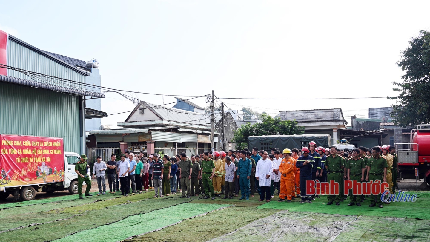 Tình huống giả định là: Đám cháy xảy ra tại nhà bếp của 1 hộ dân thuộc tổ 2, thôn 9, xã Long Hà. Đây là một trong những khu dân cư đông với 278 nhân khẩu, nhiều nhà liền kề.