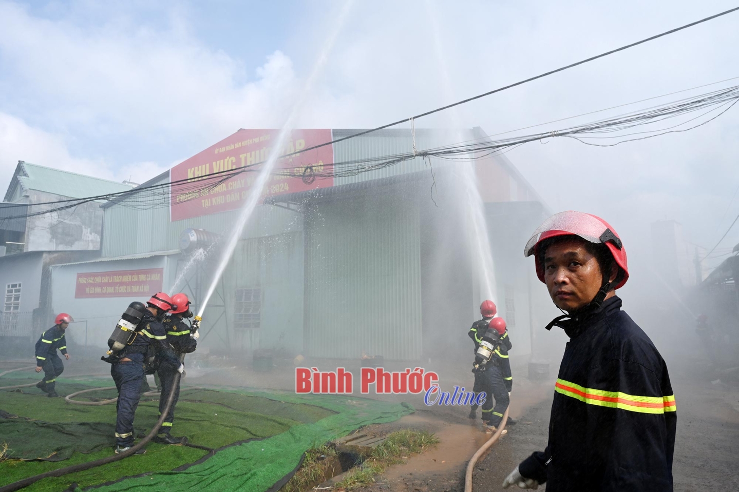 Đám cháy sau đó lan ra các hộ dân xung quanh. Khi xảy ra cháy, nổ, người dân hoảng loạn, xô đẩy nhau tìm cách thoát ra khu vực an toàn. Người dân đã sử dụng bình chữa cháy xách tay để chữa cháy ban đầu, đồng thời gọi điện báo cháy. UBND xã Long Hà, Công an huyện Phú Riềng và lực lượng phòng cháy, chữa cháy và cứu nạn, cứu hộ Công an tỉnh sau khi tiếp nhận tin báo nhanh chóng điều động lực lượng triển khai các phương án chữa cháy, dập tắt hoàn toàn.