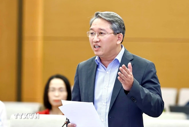 Chủ nhiệm Ủy ban Pháp luật của Quốc hội Hoàng Thanh Tùng phát biểu. (Ảnh: Doãn Tấn/TTXVN)