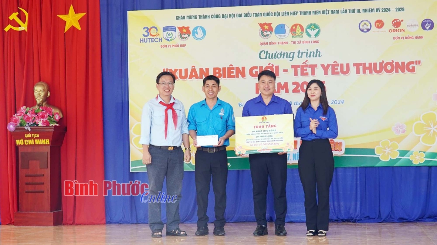 Ý nghĩa các hoạt động ‘Nghĩa tình biên giới’ của tuổi trẻ Bình LongBPO - Trong 2 ngày (27 và 28-12), Thị đoàn Bình Long phối hợp với Đoàn thanh niên Nhà máy Xi măng Bình Phước tổ chức chương trình “Nghĩa tình biên giới” năm 2024, cùng sự đồng hành của Đoàn thanh niên Tổng Công ty Xi măng Việt Nam, Công ty cổ phần Xi măng Vicem Hà Tiên. Chương trình diễn ra với nhiều hoạt động sôi nổi, ý nghĩa thu hút đông đảo đoàn viên thanh niên các đơn vị tham gia.