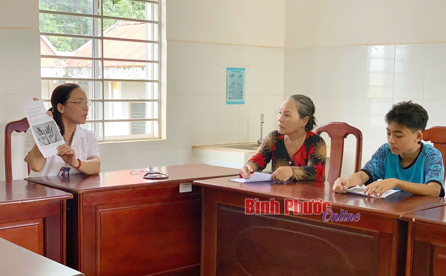 Cán bộ y tế kiểm soát dịch bệnh thuộc Trung tâm Y tế huyện Bù Gia Mập đến các điểm trường tuyên truyền kế hoạch tiêm chủng phòng, chống bệnh sởi