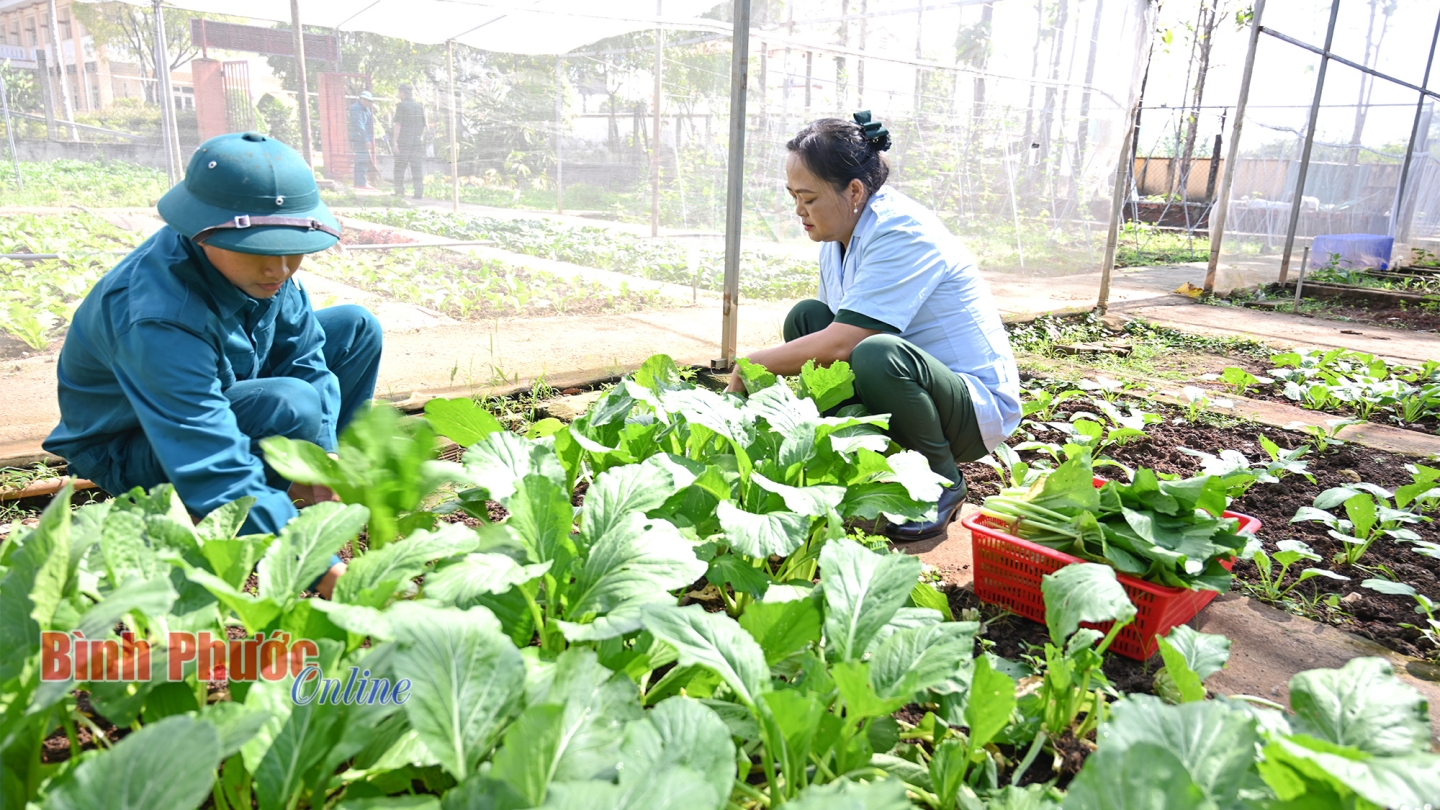 Ngoài thời gian chuẩn bị bữa ăn phục vụ bộ đội, chị Vân cùng bộ phận hậu cần tận dụng thời gian và thực phẩm thừa để tổ chức tăng gia sản xuất như: trồng rau xanh, nuôi dê... Những sản phẩm tăng gia hoàn toàn không có thuốc kích thích, tăng trọng, được đưa vào bữa ăn của bộ đội giúp bữa ăn ngon hơn, bảo đảm chất lượng và an toàn, vệ sinh thực phẩm.