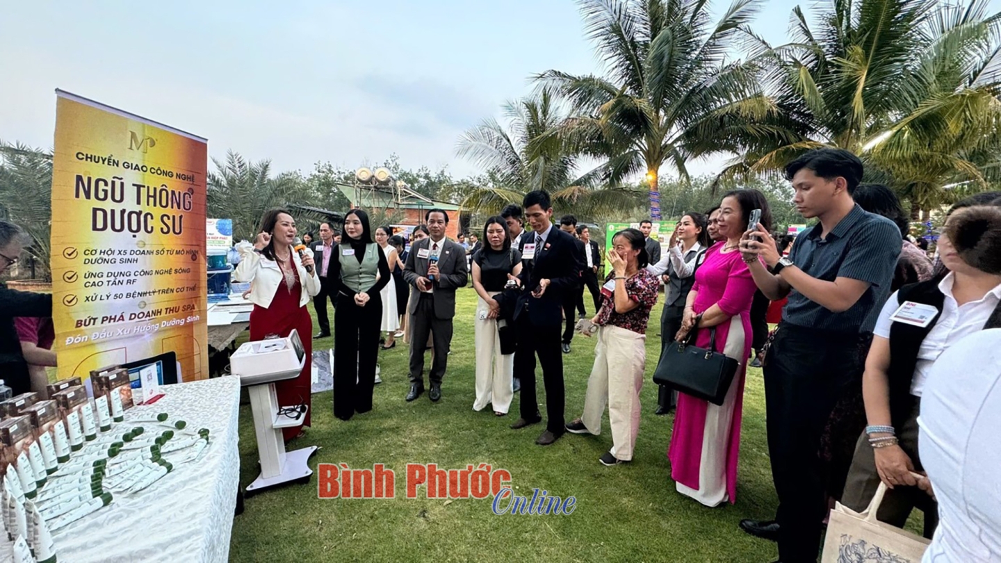 Đại diện các doanh nghiệp tham quan các gian hàng và được giới thiệu về sản phẩm trưng bày