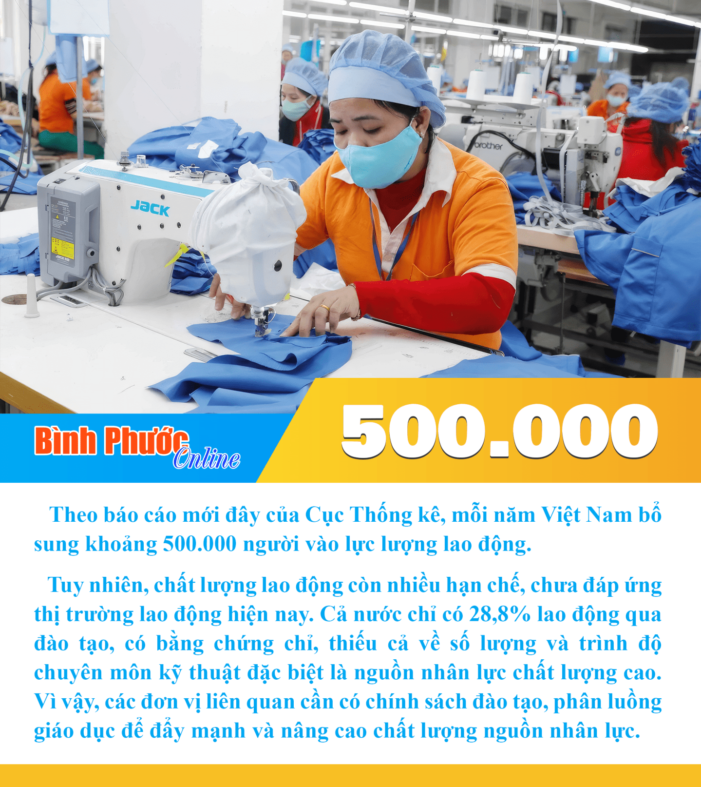 Mỗi năm lực lượng lao động được bổ sung khoảng 500.000 người
