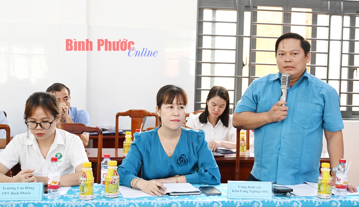 Đại diện công đoàn các khu công nghiệp, doanh nghiệp thông tin nhu cầu tuyển dụng lao động tại hội nghị