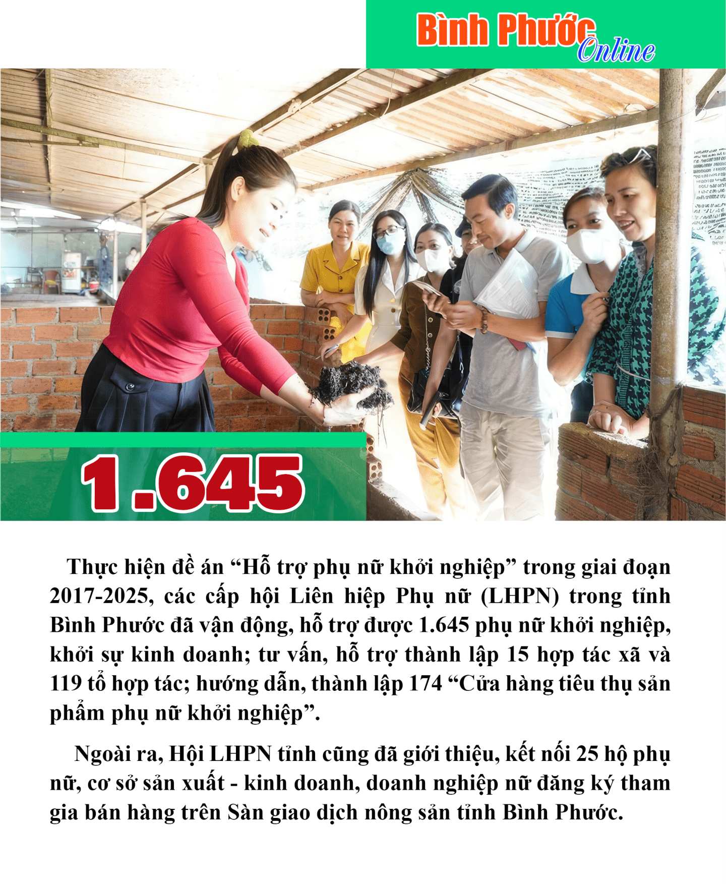 Bình Phước: Giai đoạn 2017-2025, đã vận động, hỗ trợ được 1.645 phụ nữ khởi nghiệp, khởi sự kinh doanh