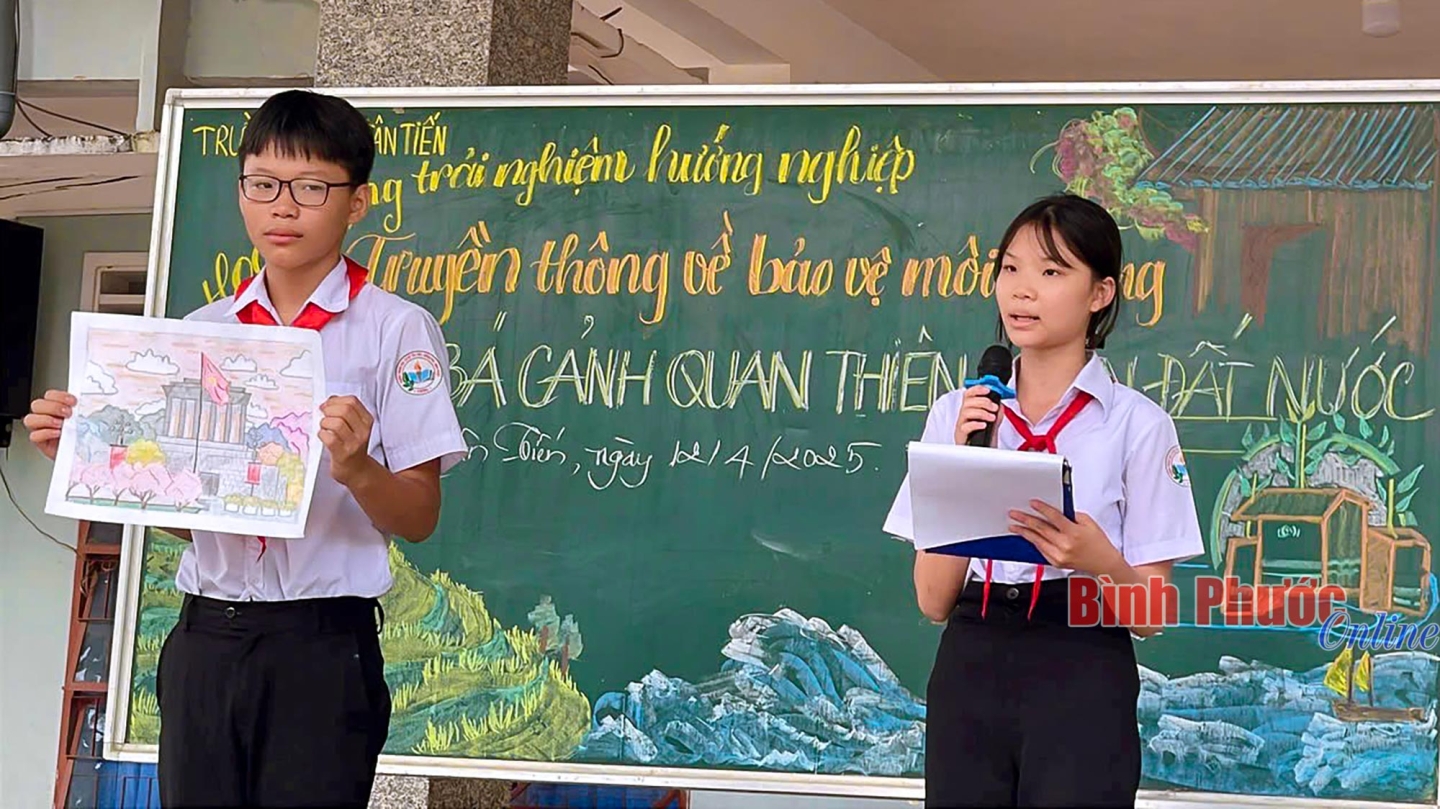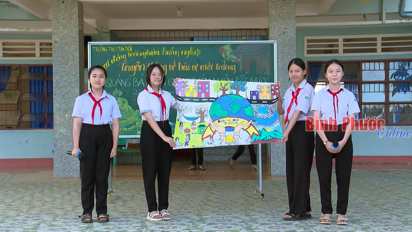 Thông qua hoạt động trải nghiệm, học sinh Trường THCS Tân Tiến, huyện Đồng Phú gửi đi rất nhiều thông điệp về bảo vệ môi trường, trái đất