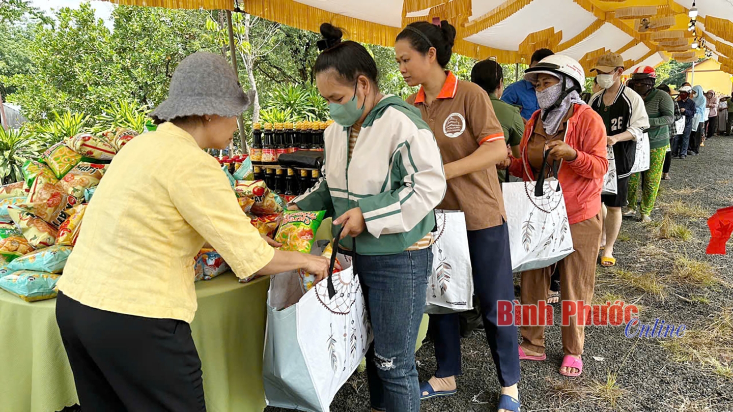36 gian hàng với đầy đủ nhu yếu phẩm, thực phẩm, đồ gia dụng, chăn màn… được chuẩn bị chu đáo. Hơn 200 hộ dân là những gia đình có hoàn cảnh khó khăn, người già neo đơn, bệnh tật, đồng bào dân tộc thiểu số trên địa bàn thành phố Đồng Xoài lần lượt được nhận các loại hàng hoá này để giảm bớt một phần khó khăn trong cuộc sống.