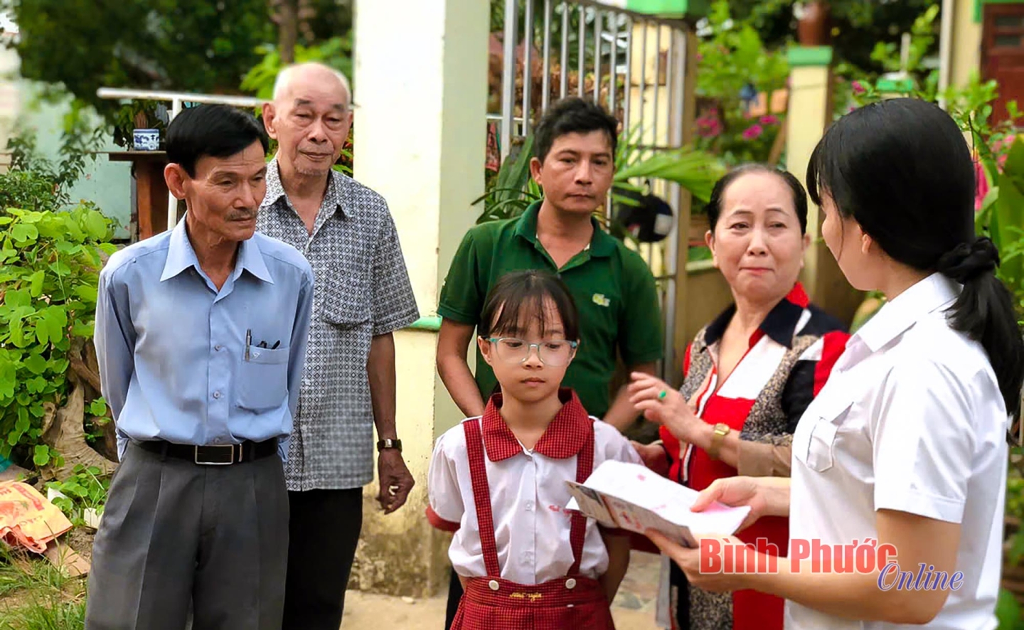 Cán bộ Trung tâm Dịch vụ nông nghiệp thành phố Đồng Xoài cùng đại diện các ban, ngành, đoàn thể phường Tân Bình và khu phố Tân Bình thăm hỏi 2 cha con anh Lê Quốc Diện sau khi bị chó dại cắn