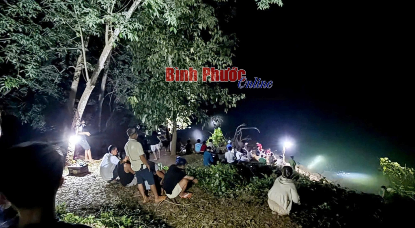 Lực lượng chức năng và người dân xuyên đêm tìm kiếm các cháu Lê B. (15 tuổi) và cháu Lê H. (10 tuổi) bị đuối nước